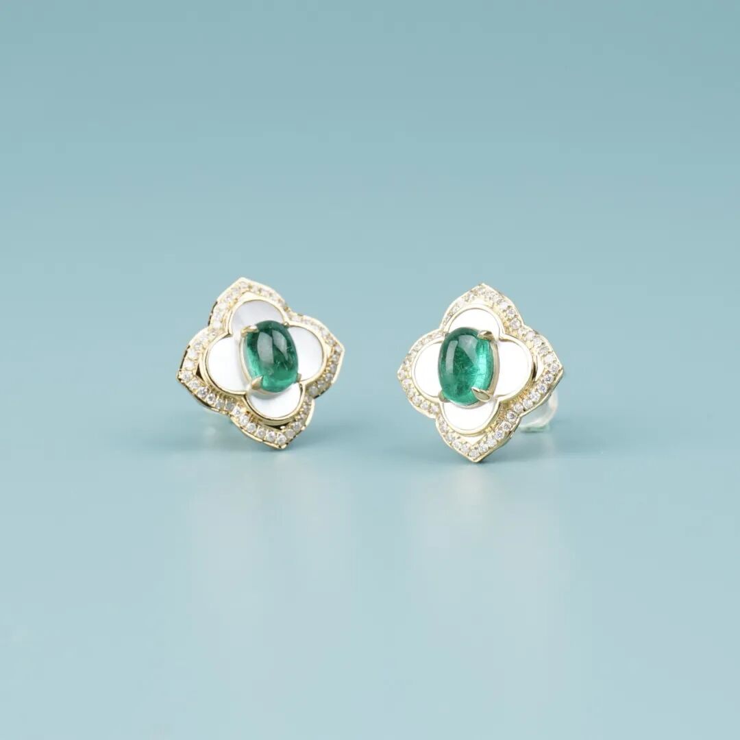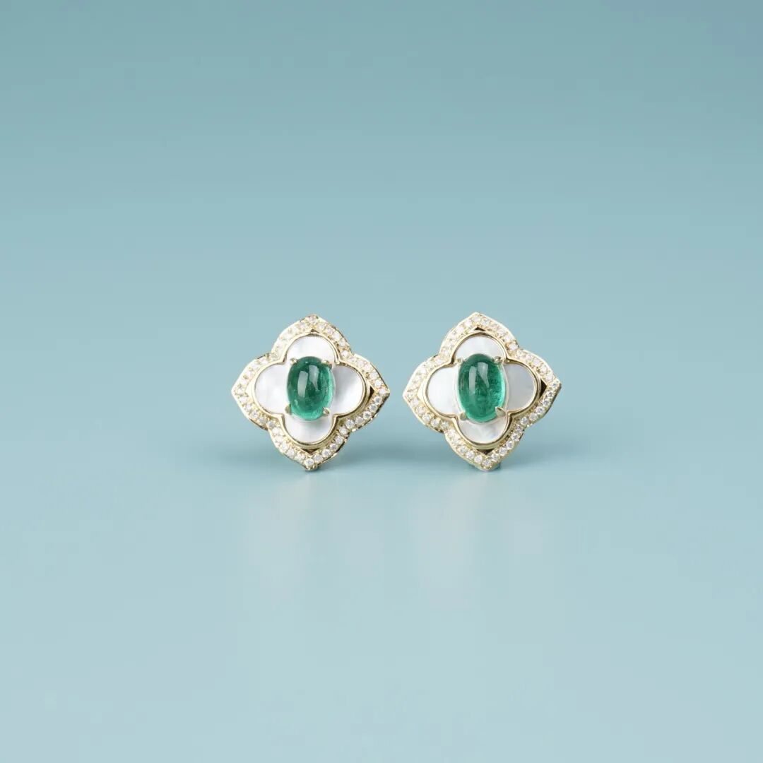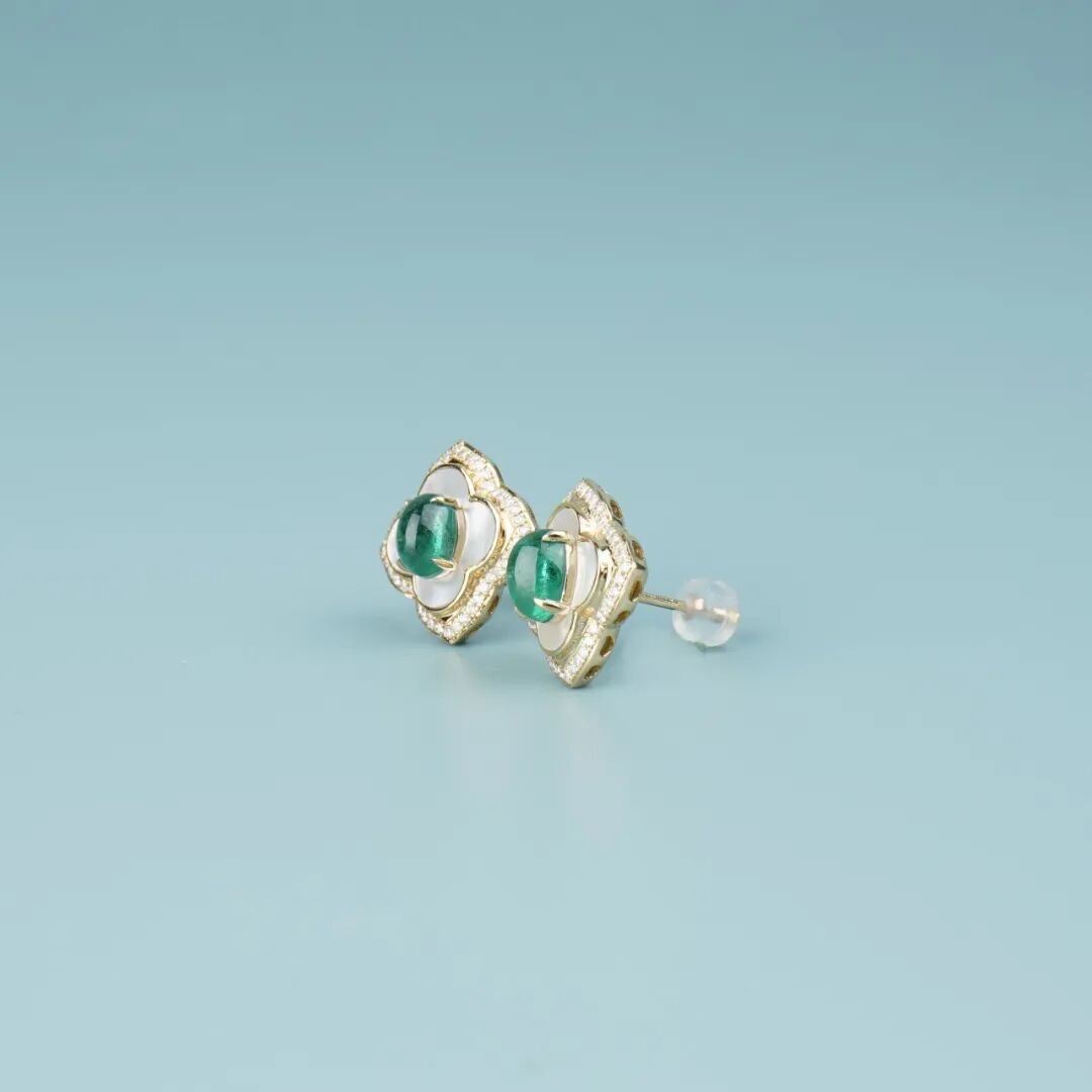 天然祖母绿配贝母及钻石耳钉(祖母绿共重约2.5克拉)