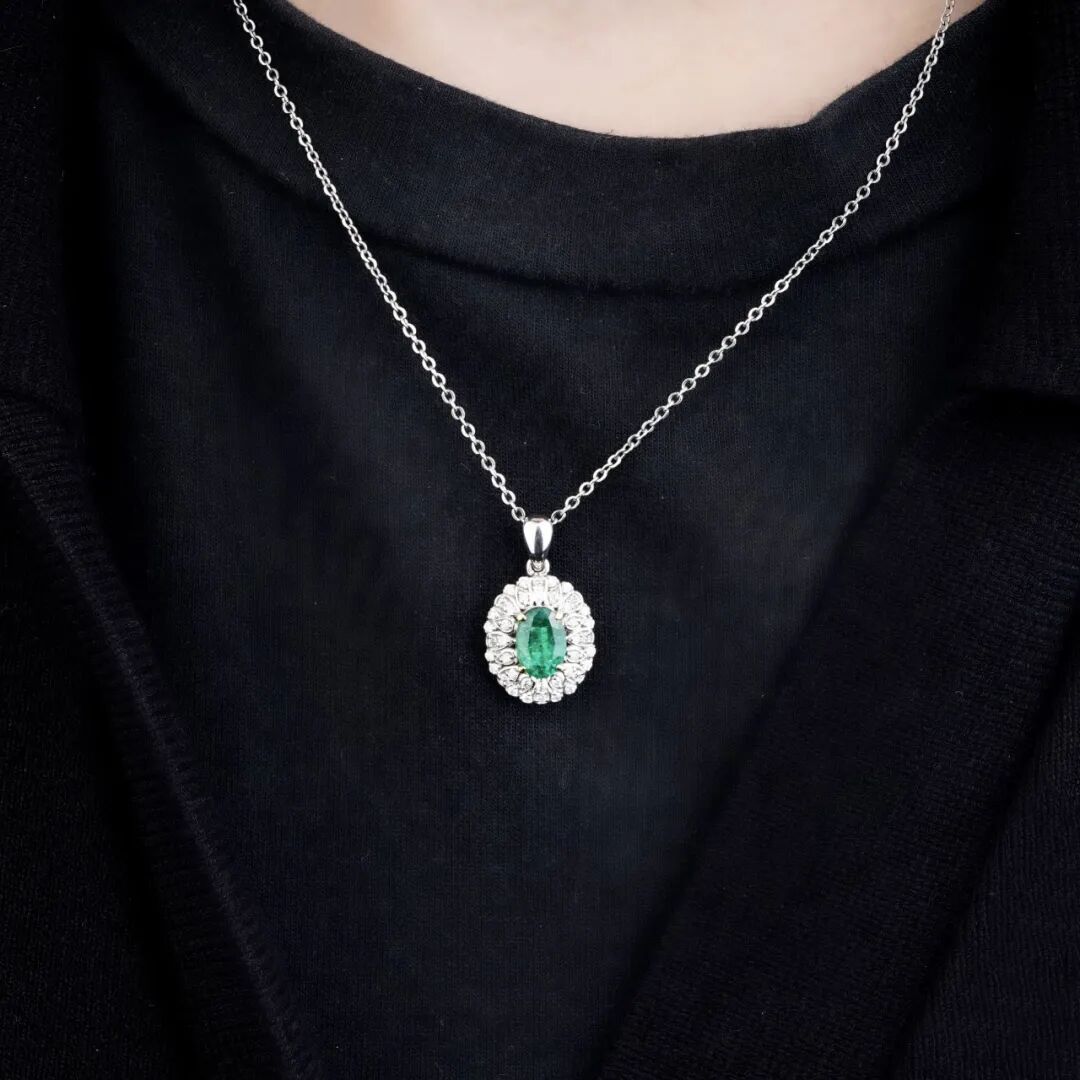 天然祖母绿配钻石吊坠项链(祖母绿共重约7.39克拉)
