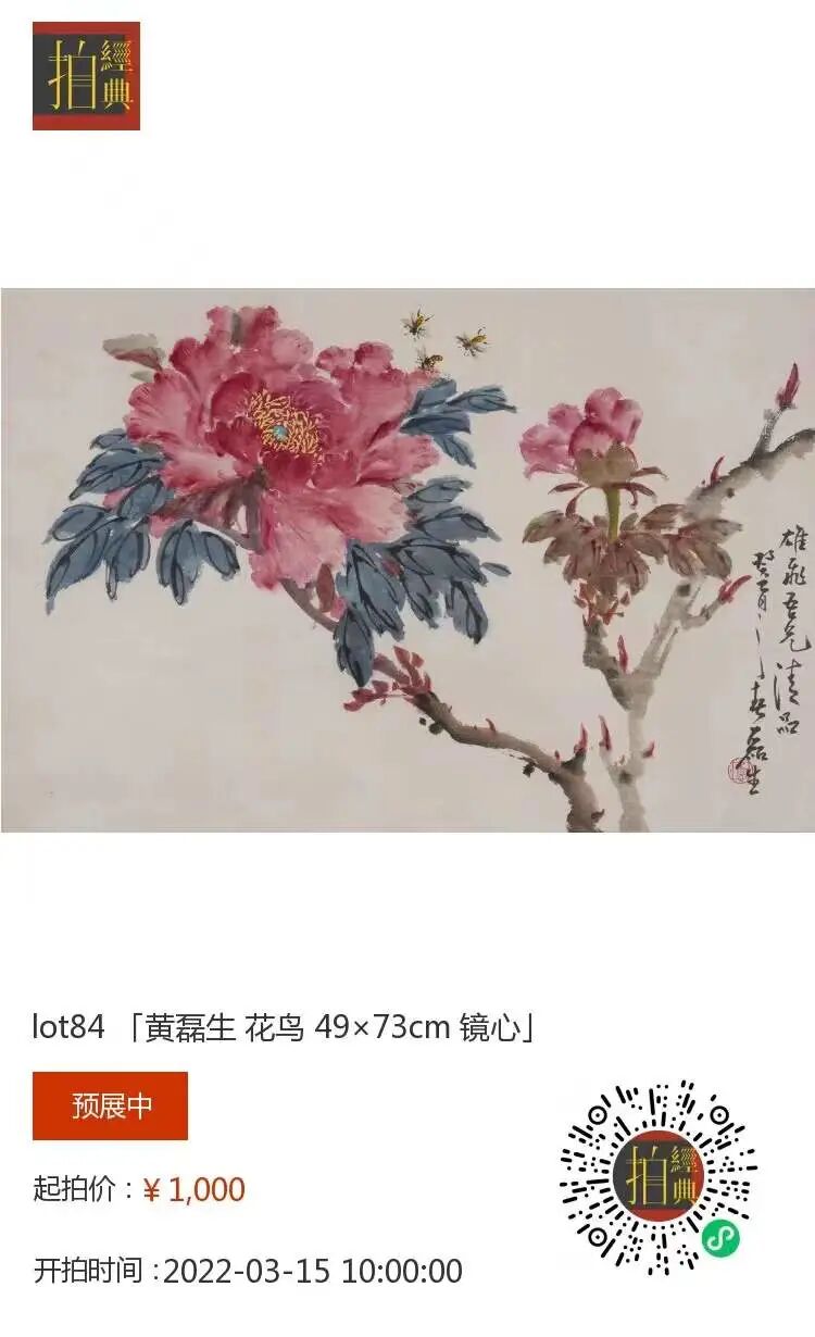 黄磊生,1928年出生于广东台山。台湾著名画家。自幼爱好书画,浸淫古典名籍。1949年拜当代宗师赵少昂门下,博采精研,所作花卉、翎毛、虫鱼、山水、走兽、人物,构图命意赋色均有独到的新格调;其挥毫作画,笔下若万马奔腾、气势磅礴、笔法轻快淋漓、博得艺坛盛誉。