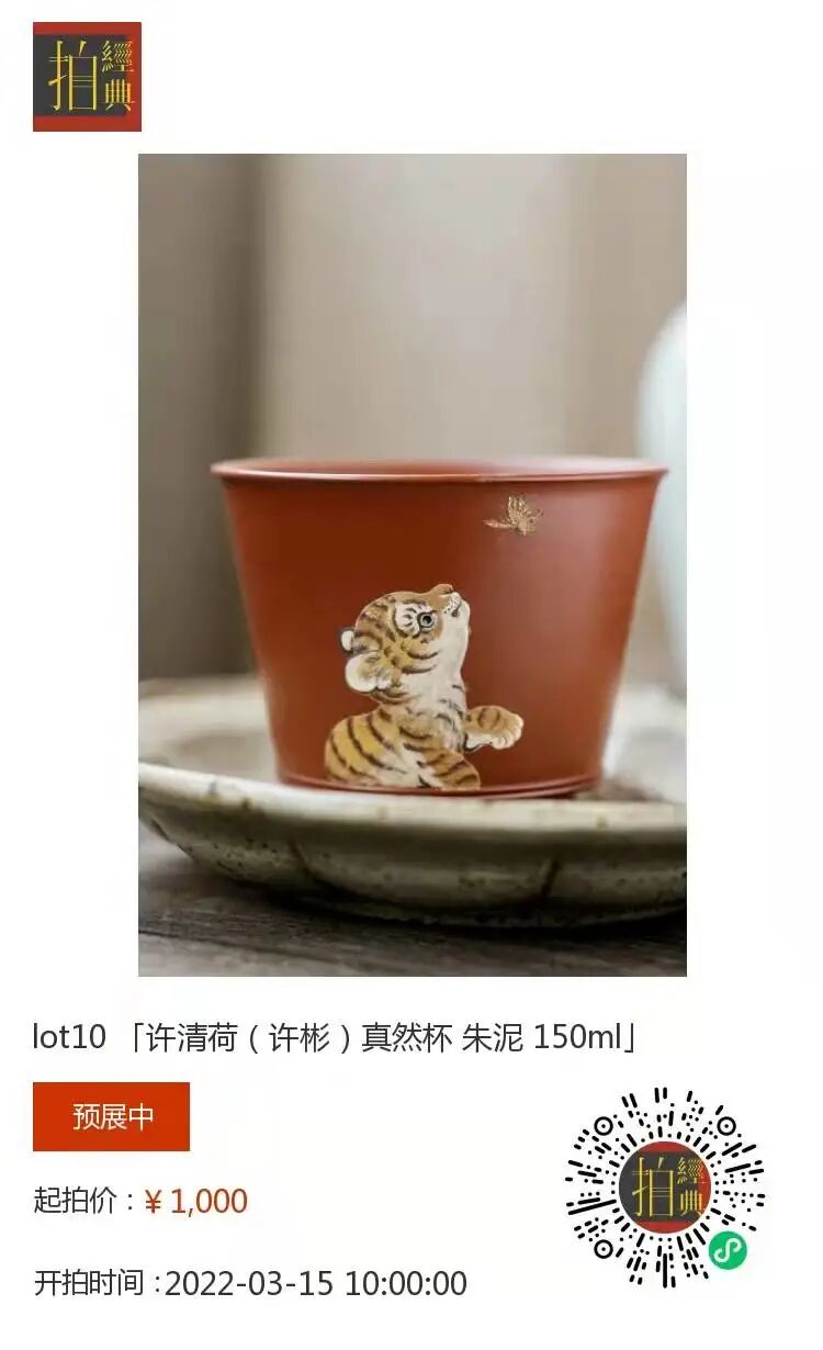 经典主人杯样式,大气雅致,古法泥绘老虎于杯身之上,趣味横生。