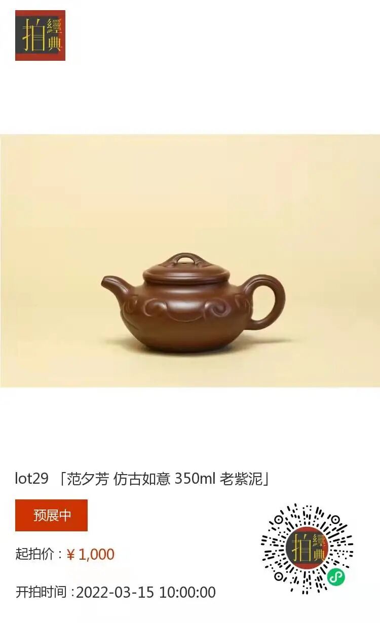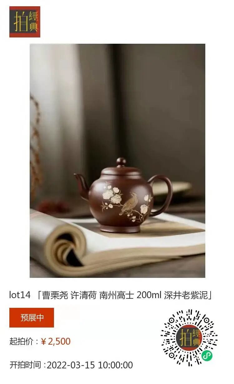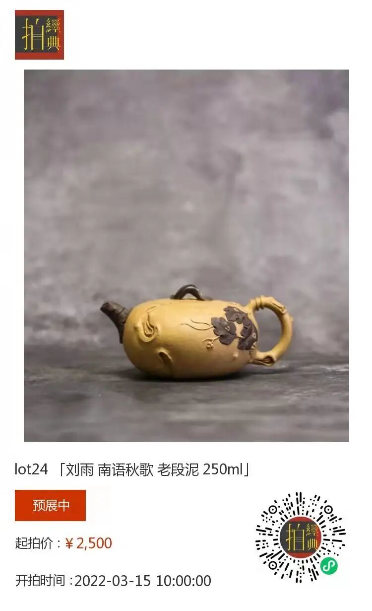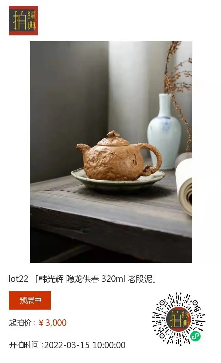 【紫泥春华】宜兴紫砂陶艺专场汇集了周泽云、吴力群、许清荷、曹栗尧、施生溢、韩光辉、刘雨、范夕芳等颇具收藏价值的紫砂工艺美术师作品。作品均来自艺术家本人或资深紫砂藏家,来源清晰可靠,均可出具作品证书。