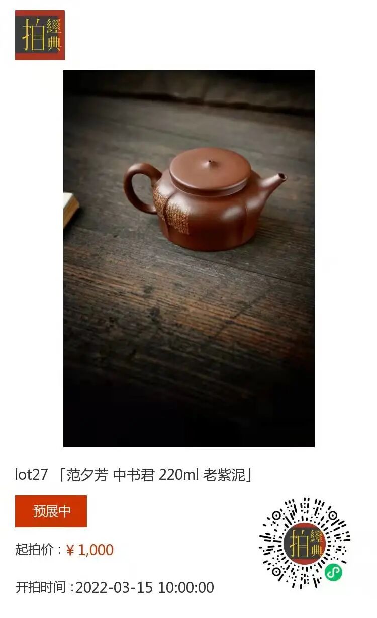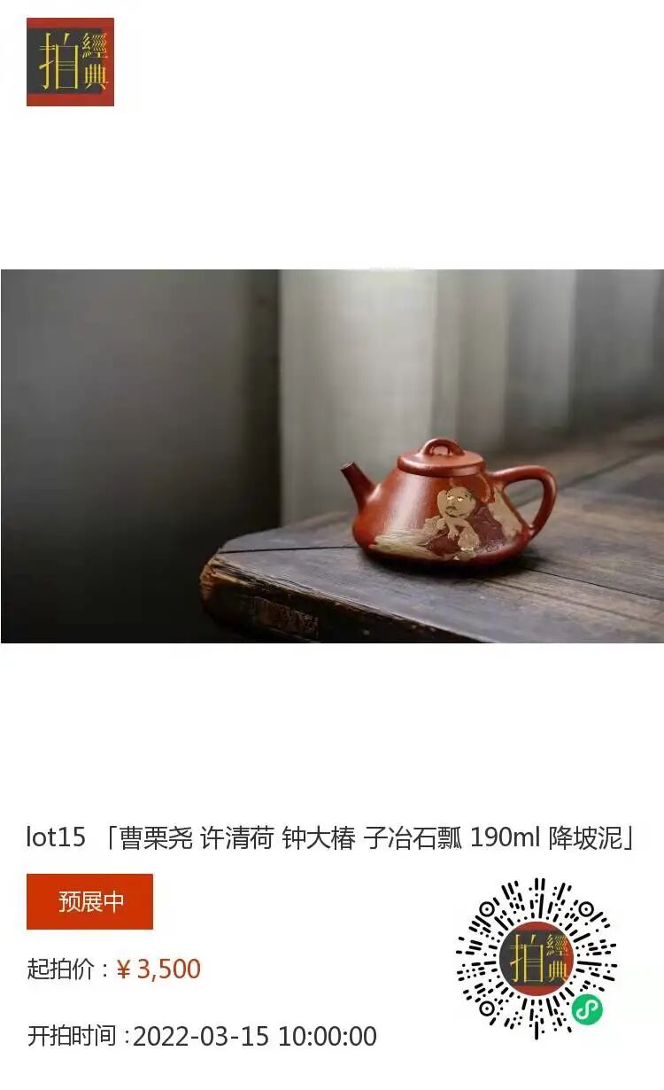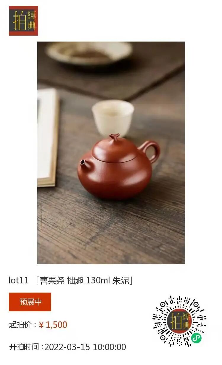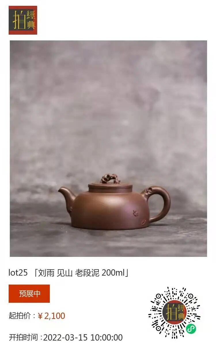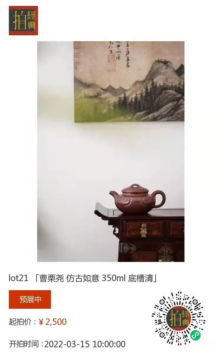 【紫泥春华】宜兴紫砂陶艺专场汇集了周泽云、吴力群、许清荷、曹栗尧、施生溢、韩光辉、刘雨、范夕芳等颇具收藏价值的紫砂工艺美术师作品。作品均来自艺术家本人或资深紫砂藏家,来源清晰可靠,均可出具作品证书。