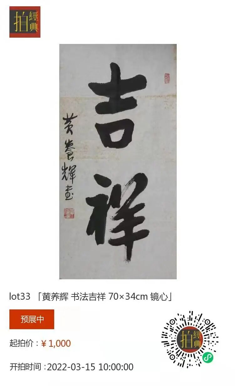 黄养辉(1911-2001),著名书画艺术家、美术教育家、金石篆刻家。江苏无锡人。师从徐悲鸿,28岁起历任国立北平艺专副教授兼徐悲鸿秘书,苏州美专教授,中国歌剧院特约教授,南京大学教授,建国后任江苏省国画院高级画师协会顾问,徐悲鸿奖学金委员会委员,江苏省第五、六届政协委员,南京大学教授,曼谷中国画院名誉院长,金陵印社名誉社长。1944年33岁时任徐悲鸿大师秘书,直至徐在北京去世,深得悲鸿大师倚重。黄养辉精于素描、水彩、油画、国画、书法、篆刻。功深力厚,造诣非凡。悲鸿大师曾评价其“于艺卓然有所树立,开中国绘画新境界,知名当世”。