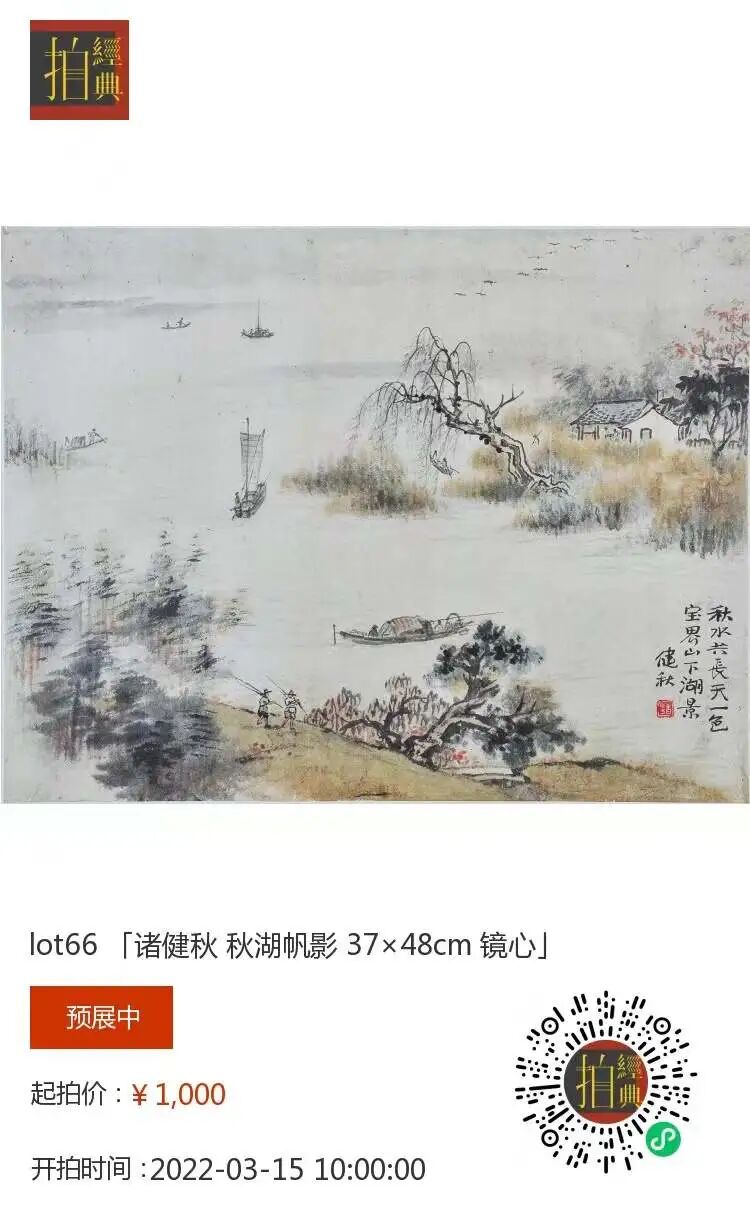 诸健秋(1891-1965),名鹄,清光绪十七年生, 无锡人。其父诸海萍、兄诸永年皆为画家。早年拜赵鸿雪为师,后师从吴观岱。民国13年,与胡汀鹭创办无锡美专。民国24年,云林书画社成立,被推选为副社长。抗战时期多有义举。建国后被聘为苏南文物管理委员会委员,筹建了无锡市博物馆,后被聘为江苏省文史馆馆员,中国农工民主党常委,无锡市文化艺术界联合会副主席及无锡市人大代表。
