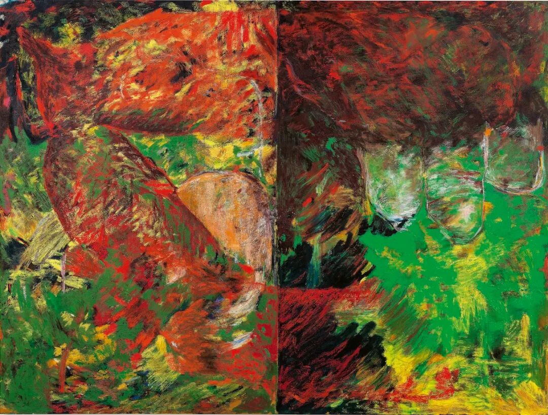 瑞秋·琼斯2021年的作品系列“lick your teeth, they so clutch”中的作品,2021年于伦敦海沃德美术馆展出牙齿对于黑人社群而言由强烈的象征意义,令人联想起牙齿烤架、镀金等牙齿装饰。用琼斯的话来说,她通过“使用花纹和颜色作为思想交流的方式,从而传达黑人身体的内在世界及其生活体验”,将我们带入了这个世界。在三月即将于伦敦邦瀚斯战后及当代艺术拍卖中呈献的《拼接的结构(7) 》(Spliced Structure (7)) (2019年作)中,色彩在画作上肆意流动,而反复出现的牙齿主题则以细腻却又明确的苍白线条抗衡。画面中, 以赤陶色、红橙色描绘的嘴唇诱人而火热,而朦胧而松散的牙齿仿佛悬于此。琼斯的画作尺幅恢宏,以蜡笔及油画棒描绘出急速的动感。油画棒在实际创作中更近蜡笔,区别与油彩的厚重的厚涂效果(impasto) 。这种媒材对于琼斯来说非常重要,她先在画面上以干燥、粉感的蜡笔作画,再用亮泽、粘稠的油画液体分层,构建出深度。她交叉地运用颜料,结合长短笔触,营造出了编织之感——这是便是观众们最先看到的。当我们在她色彩的起伏中寻找理性时,具象便从中显现。“油彩也是其中吸引人的一点,“琼斯说道,“它和油画颜料其实是同一种物质,所以这又是一次交织,它并不是区分两个媒介,而是两者共同的临界。”从历史角度来看,抽象绘画着重于形式上的微妙之处、色彩和潜意识——并不完全符合20世纪60年代社会现实主义所代表的革命叙事,但却成为那个时代的重要组成。人们期待着黑人艺术家们终将创作出反映黑人经历的标志性艺术,而这种期待贯穿了整个60年代,并一直延续至今。