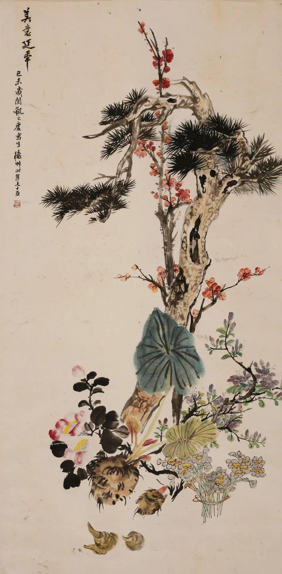 题识:己未岁阑,飌之楼写生,秋草时年七十五。
