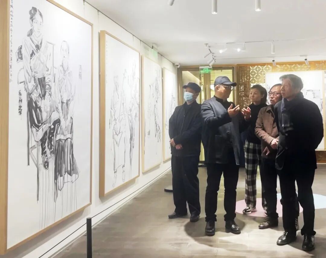 荣宝斋党委书记、执行董事赵东,副总经理唐辉及参展艺术家田黎明、胡伟、刘庆和、王颖生四人陪同观展。