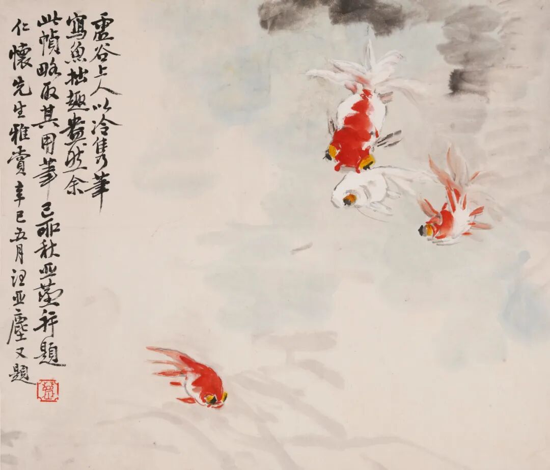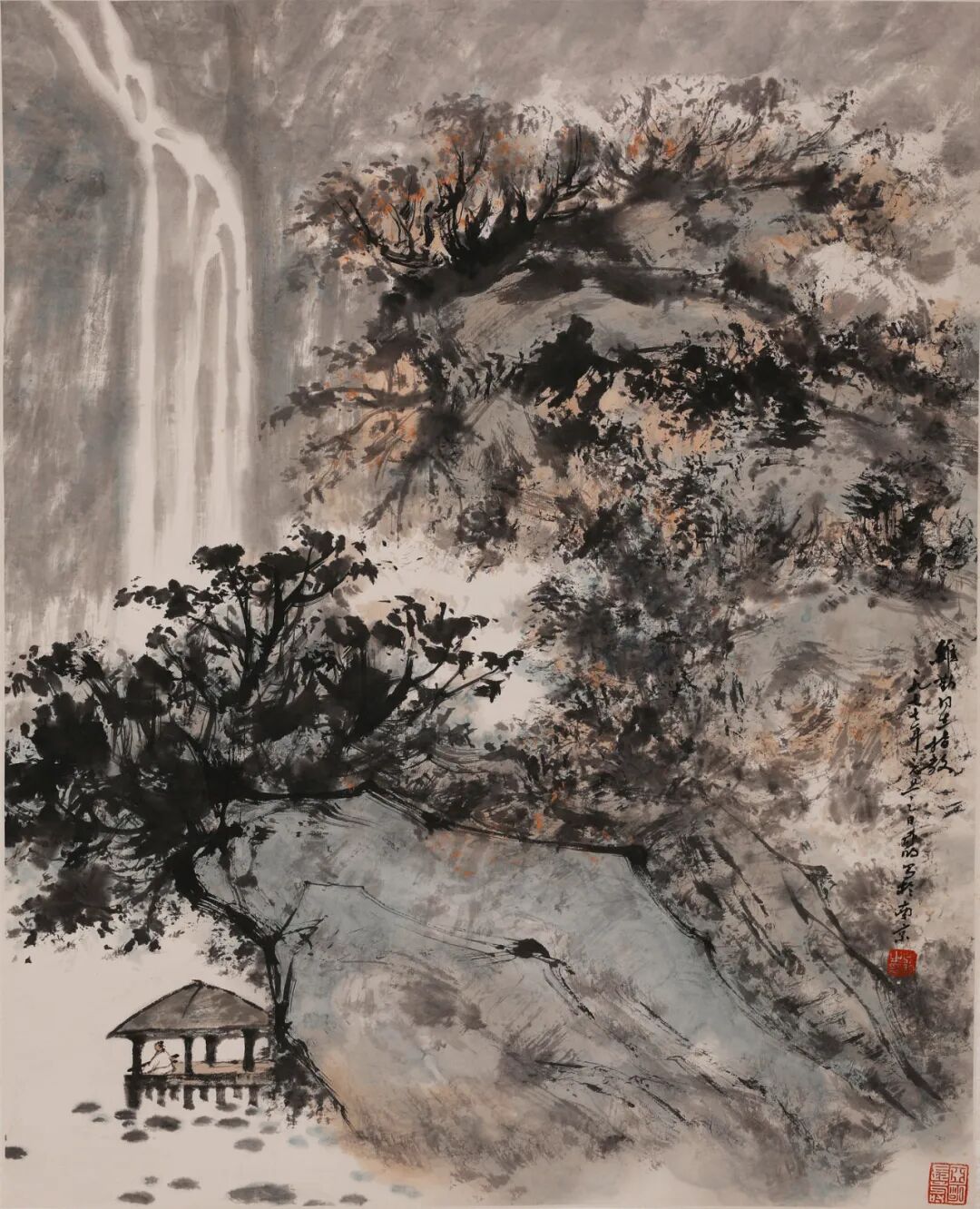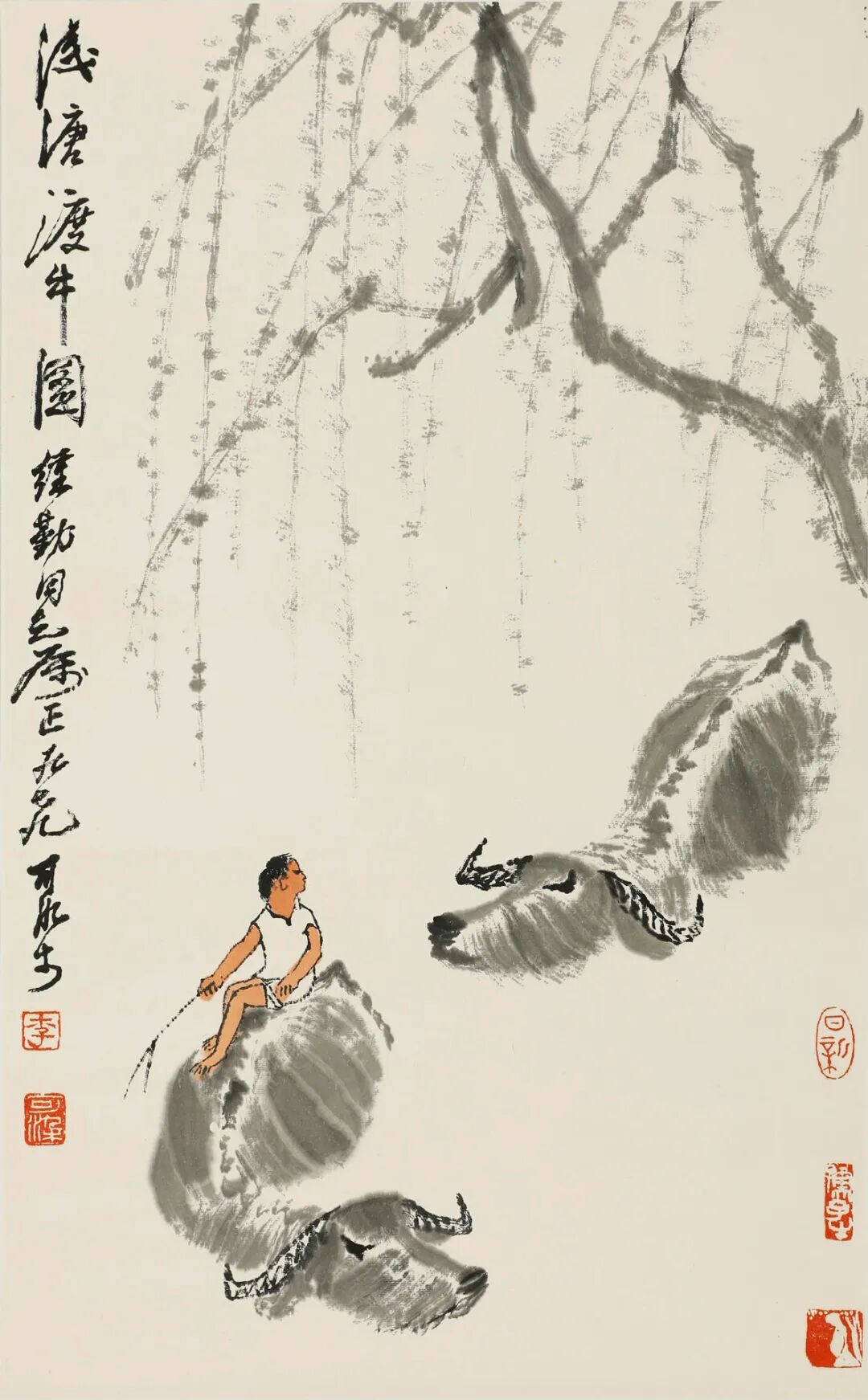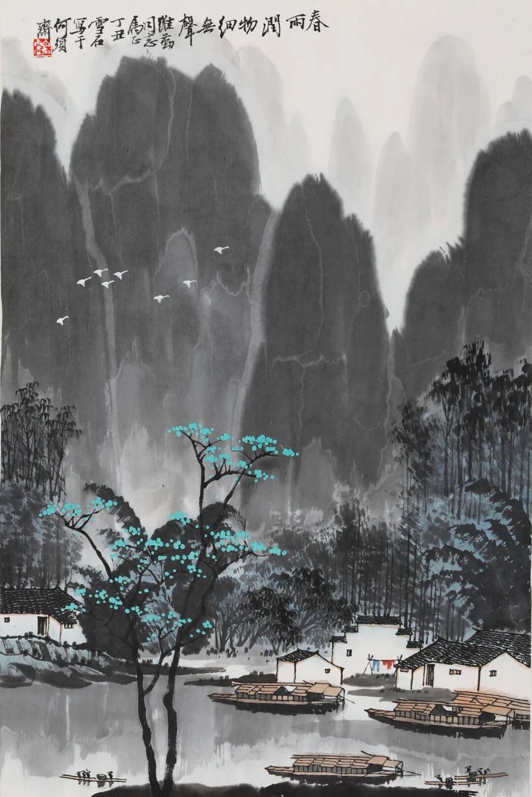 题识:维勤同志指教,一九七七年元旦之日亚明写于南京。