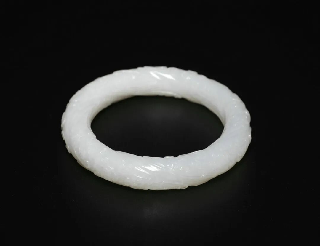 外圈80毫米,内圈56毫米,重量75.77克,密度2.95 新疆和田玉籽料 圆形