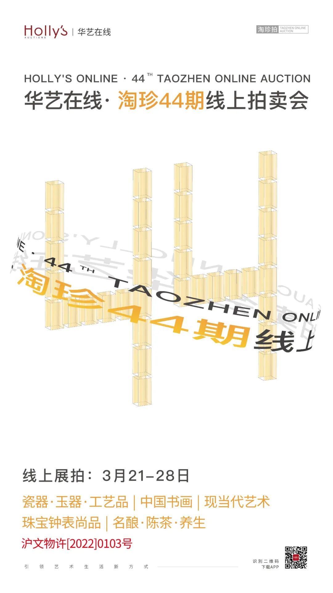 华艺在线·淘珍44期线上拍卖会中国书画、瓷器·玉器·工艺品、现当代艺术、珠宝钟表尚品、稀世真藏名酒版块各专场的精选拍品已陆续上线华艺在线APP、华艺淘珍小程序,诚邀您参与竞拍!