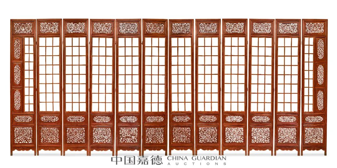 明末清初 黄花梨螭龙捧寿纹隔扇十二扇