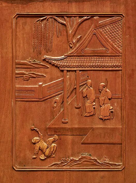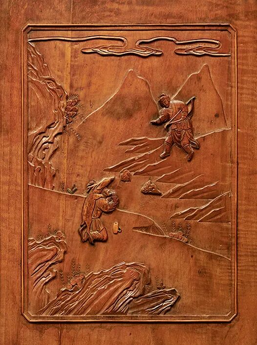 明清家具上还会采用传说故事、历史典故来进行装饰,如八仙、百子图、五子夺魁、二十四孝等等,都有着丰富的典故和寓意。