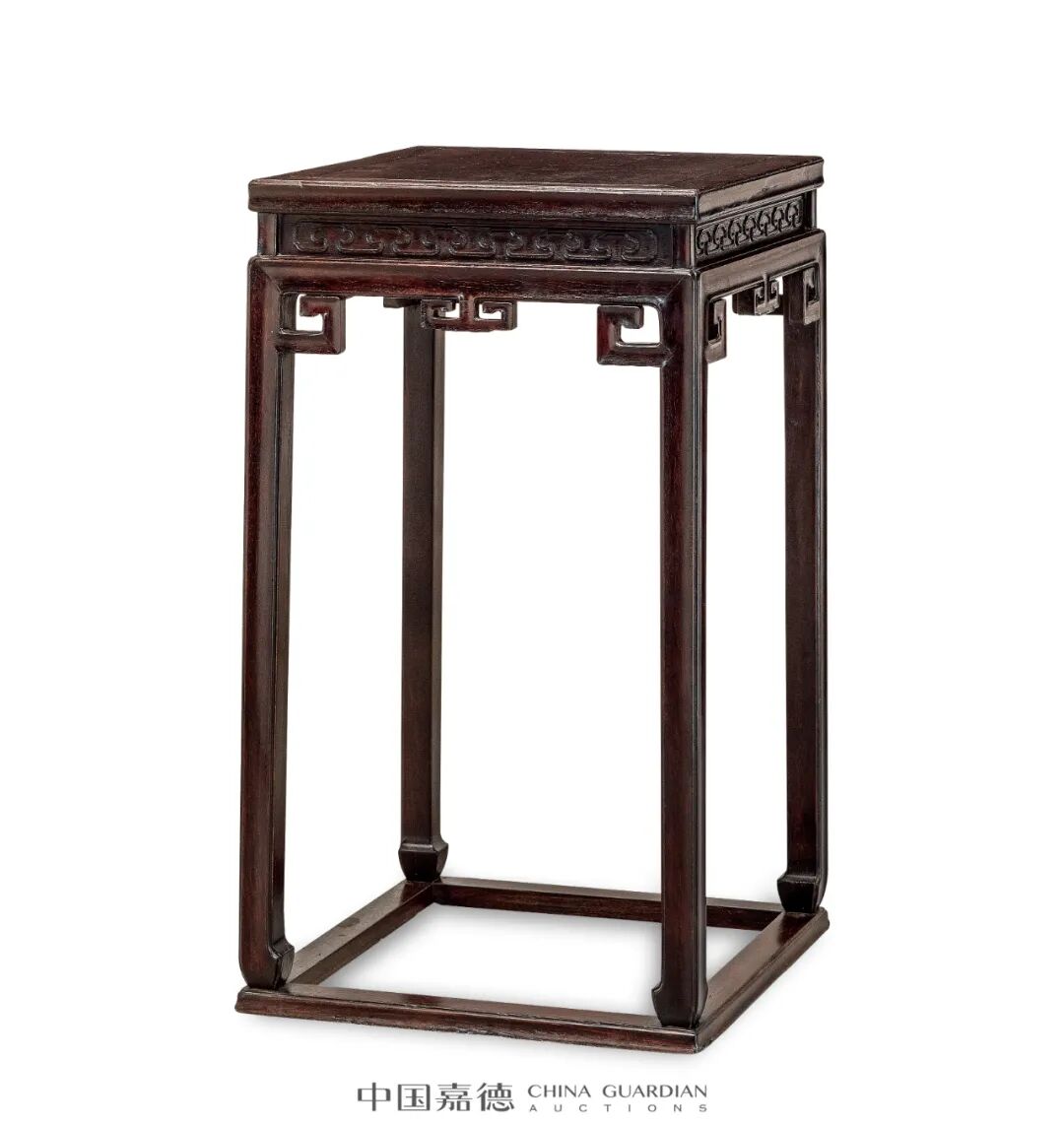 清乾隆 紫檀有束腰拐子纹带托泥大香几