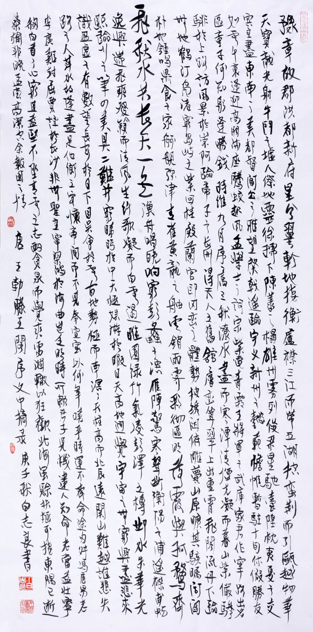 此外在如何面对传统书法的创新求变与继承的美学思考上,白志良始终都努力向艺术之深度追寻。其作品别具一格的章法布局、独特设计,使观者始终饱有着新鲜感与趣味性。他的书法作品气势磅礴,畅快淋漓,具有很强的表现张力和感染度,展现了白志良深厚的艺术功力和艺术才情,体现了白志良继承传统,面向时代,不断追求书法艺术的最新表现形式。此期间,白志良从未间断随心书写,或为信笺,或为读书笔谈,也有诗作与文献抄录,格式多样内容丰富,但却总能留住那过隙瞬间。这其实也是将历史的烟云供养再度悠然于笔墨之间,而体现白志良某种意义上的修学与所为。