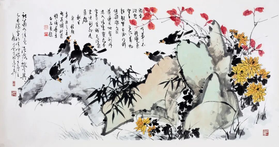 白志良还与多位艺术家建立了深厚的友谊并合作作品。尤以杨彦法师、关宏臣、孟占京、姚巨蓉等合作达数百幅作品,规模宏大,艺术的光辉淋漓尽致,相得益彰。而纵观合作创新所提炼的艺术内涵,以及书画间相互引发潜存的文化气象,既拥存着古典文脉中的精髓,又促显襟怀阔远的境界,说是一代“承脉开风”者并不为过。