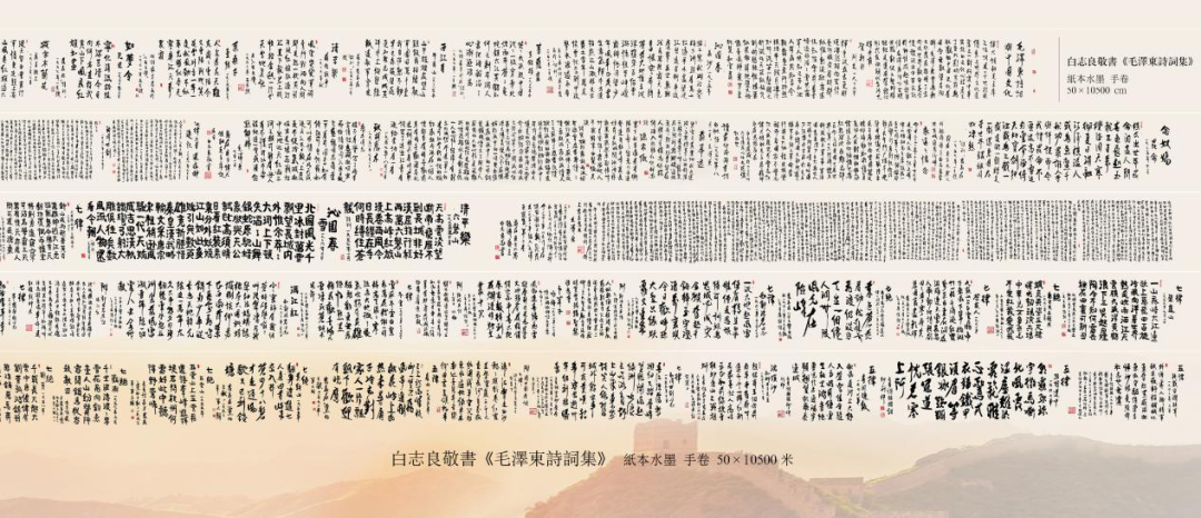 白志良书法一百米长卷《毛泽东诗词集》展示效果图