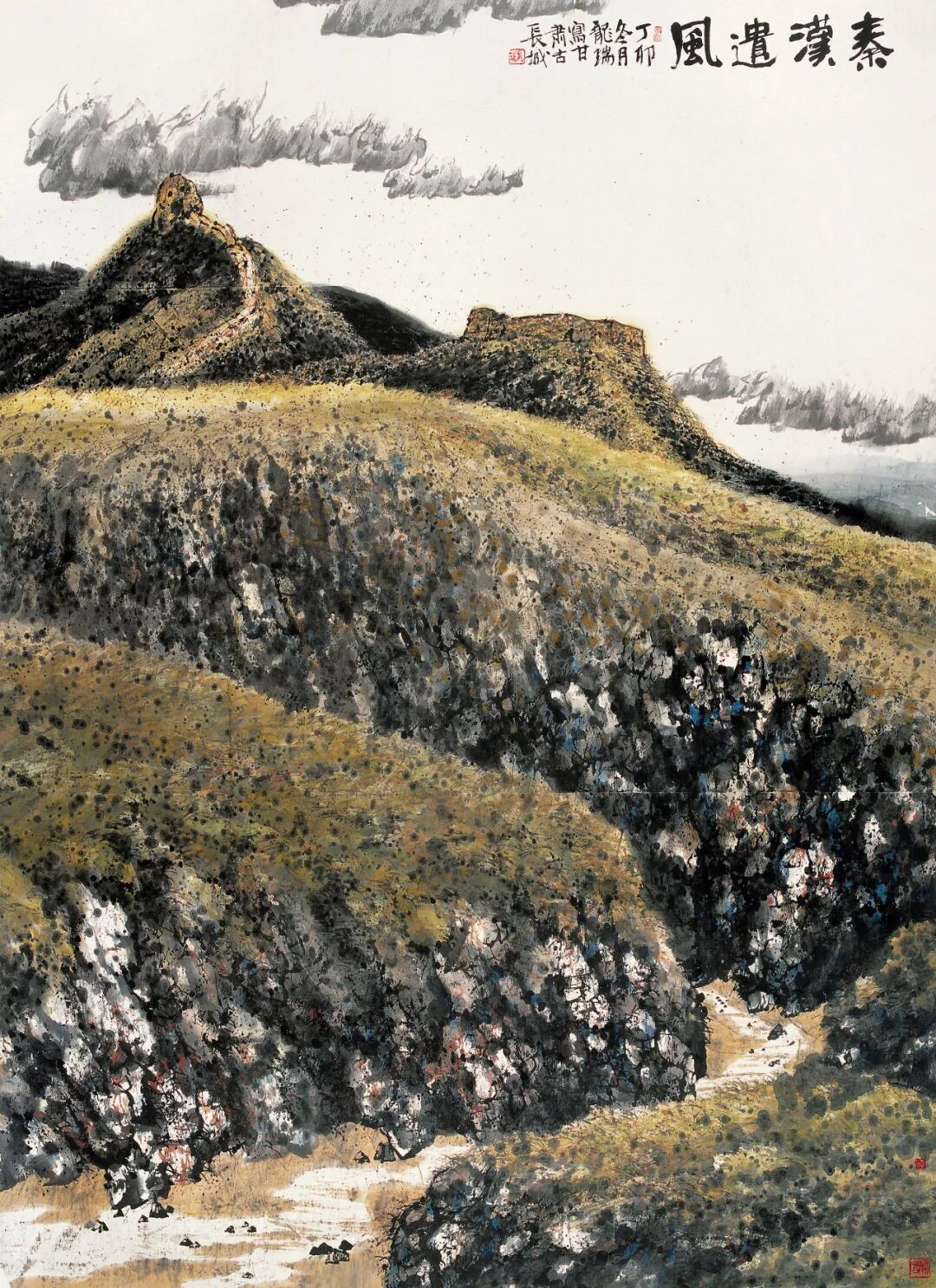 款识:丁卯冬月龙瑞写甘肃古长城。