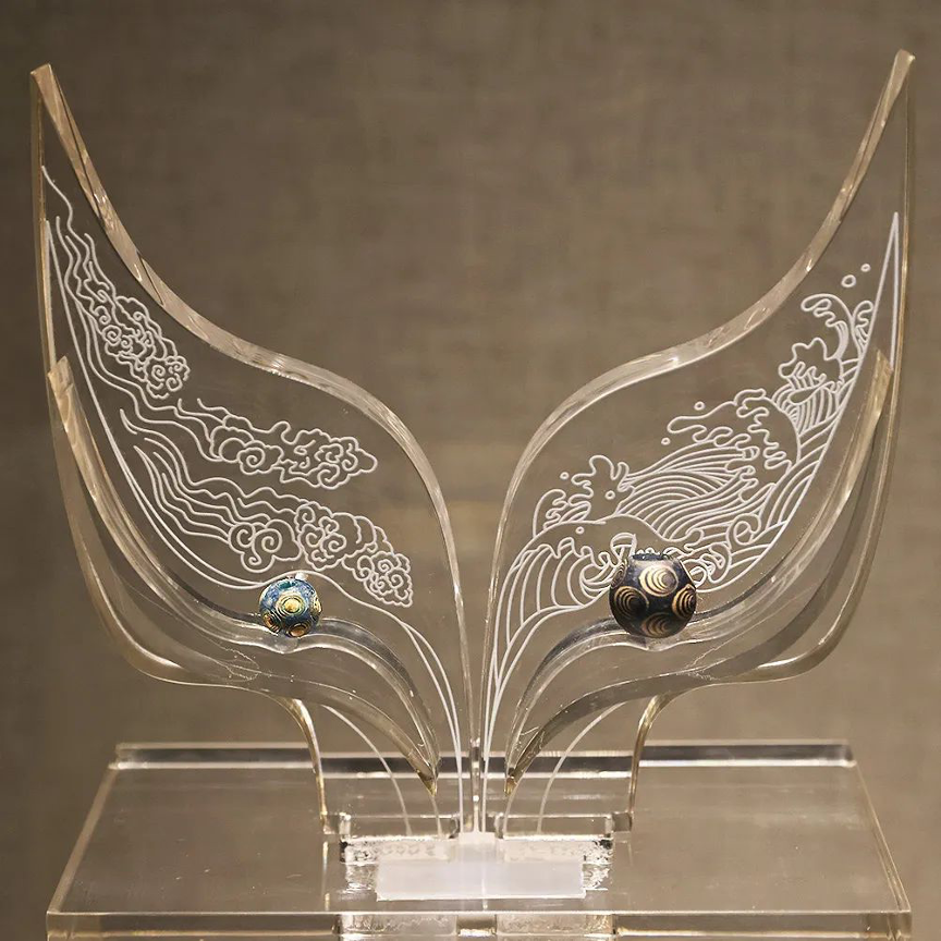 其中,甘肃省博物馆馆藏文物翼兽青铜提梁盉为首次亮相广东。特别值得一提的是在展厅入口处并列展出的“蜻蜓眼玻璃珠”,一颗为甘肃省博物馆馆藏,另一颗为广东省博物馆馆藏。
