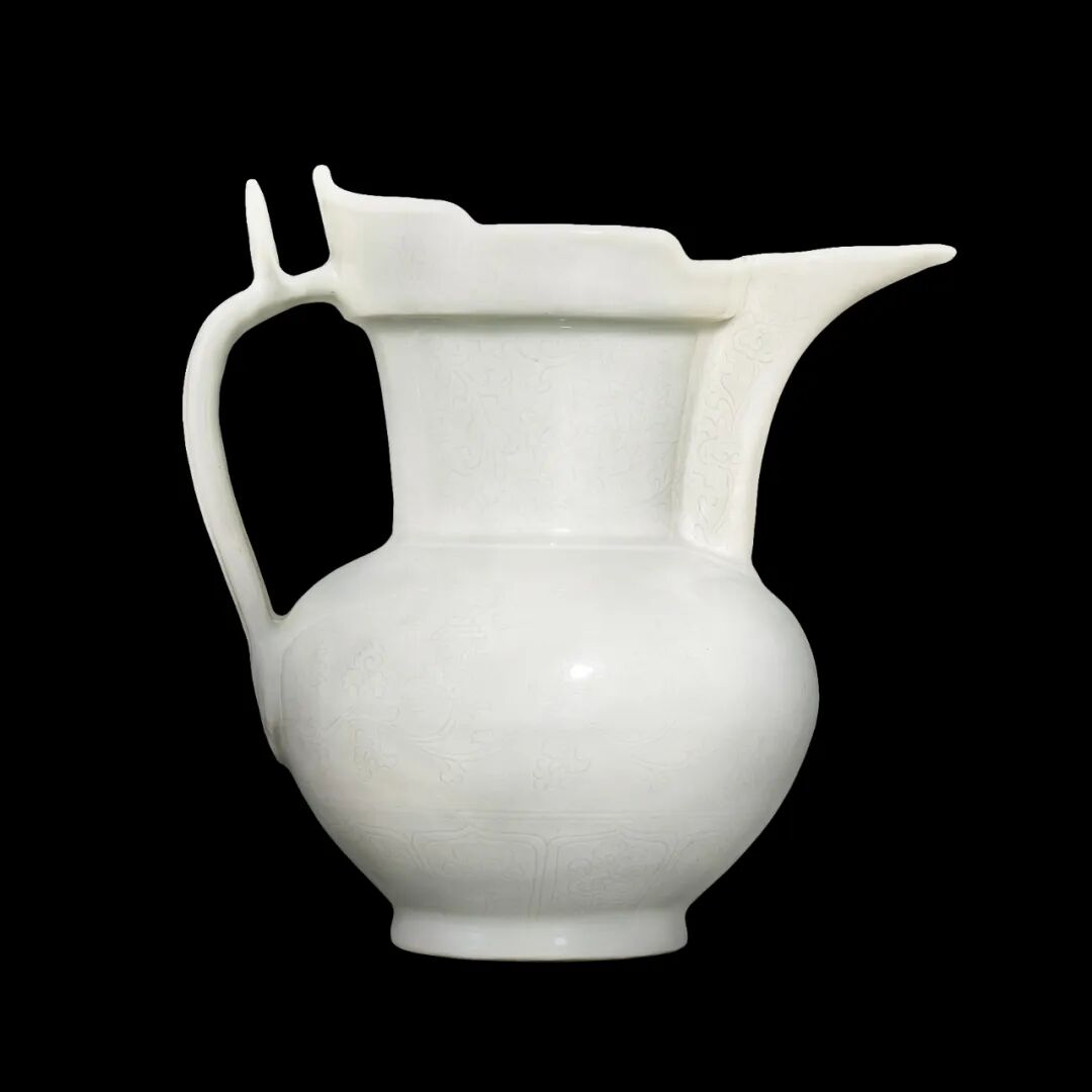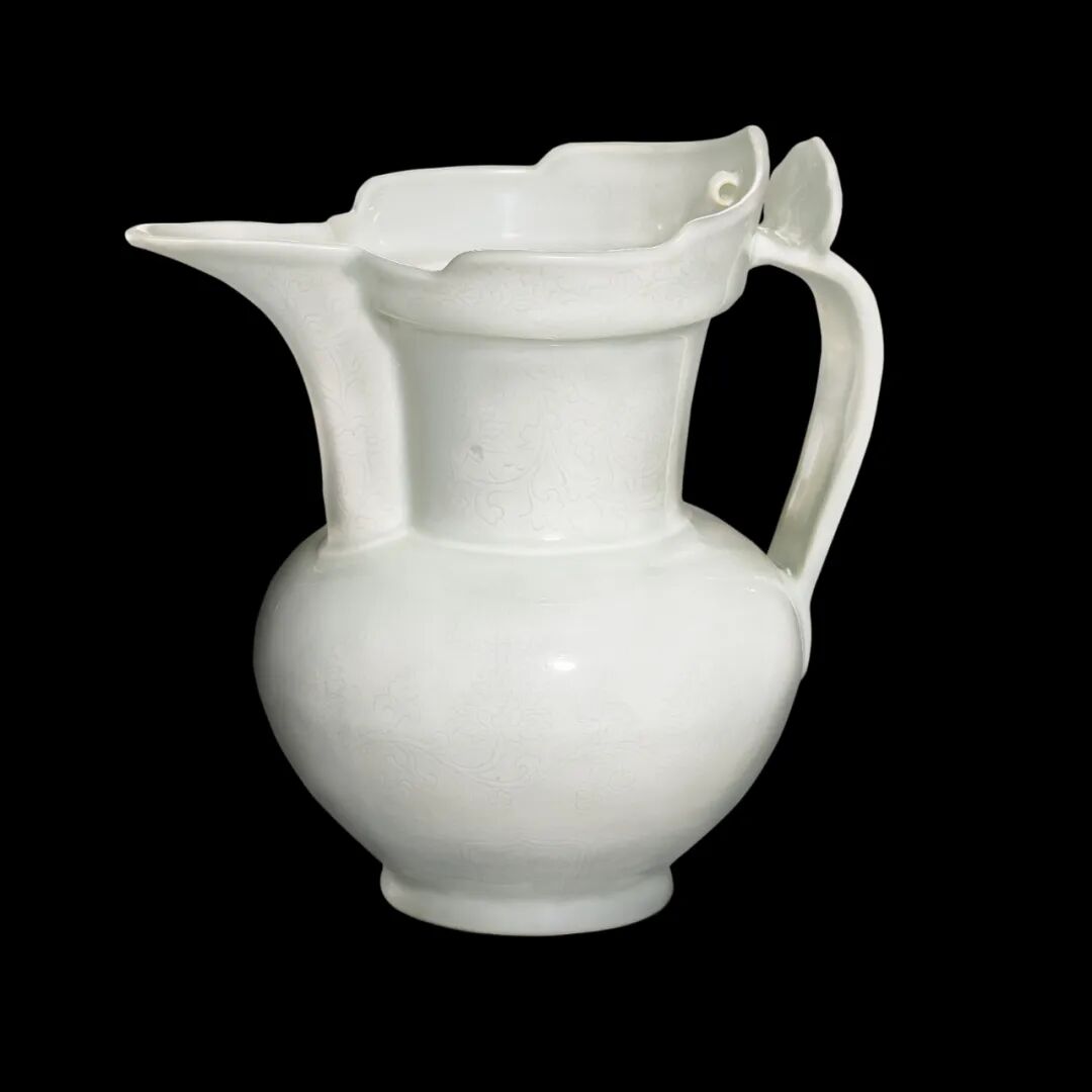 Lot 7 明永乐 甜白釉暗花缠枝莲八吉祥纹僧帽壶拍品估价:5,000,000 - 7,000,000 港币出版:《香港苏富比二十周年》,香港,1993年,图版136