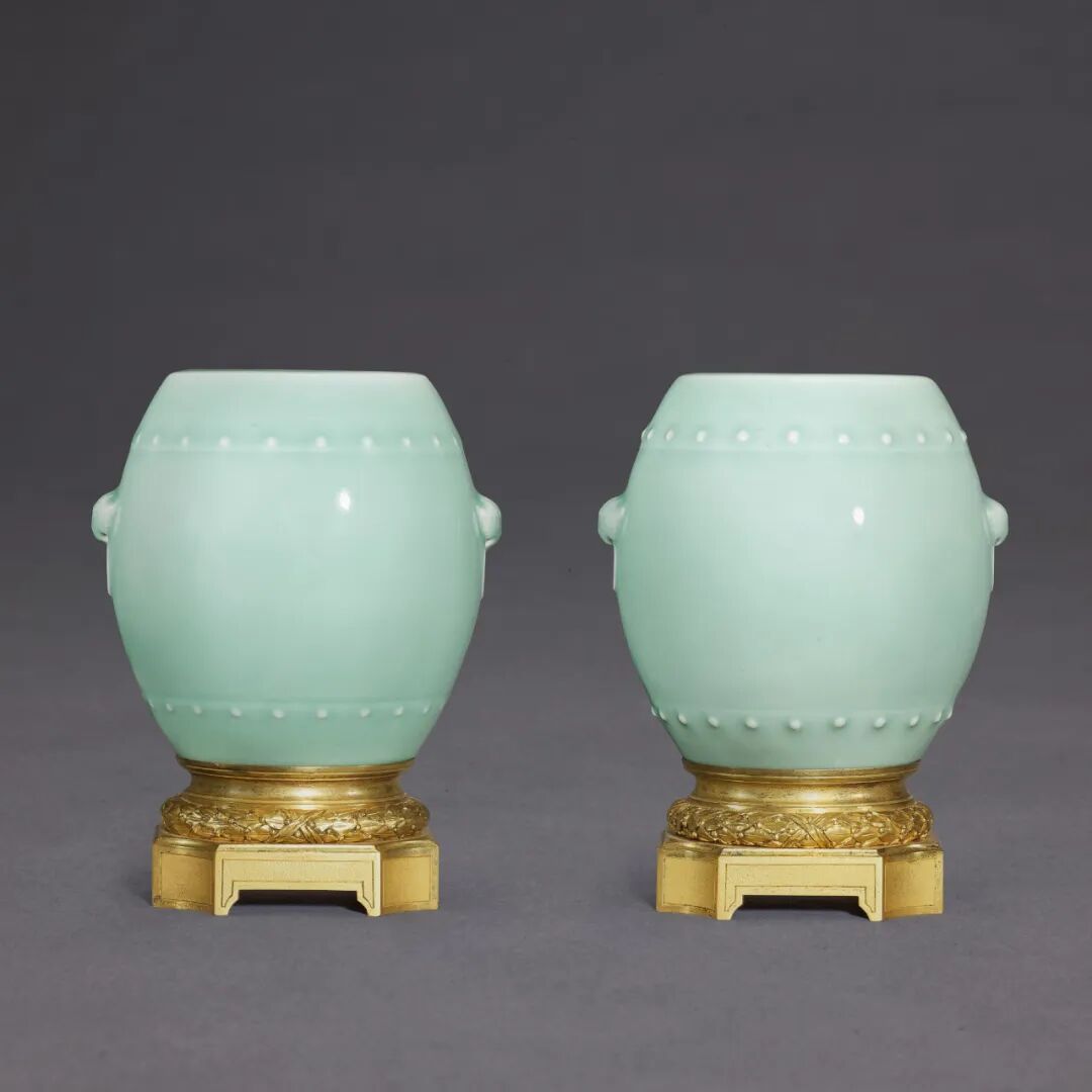 《大清乾隆年制》款 配1882年 Henri Dasson 制法国底座尺寸:高 16.3 cm, 连座高 22.3 cm拍品估价:800,000 - 1,200,000 港币来源:香港苏富比2002年12月30日,编号241