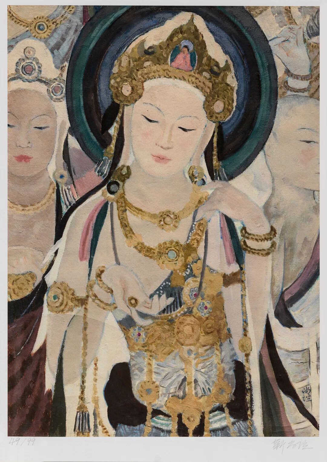 靳尚谊 临莫高窟第五十七窟(初唐)胁侍菩萨像版画