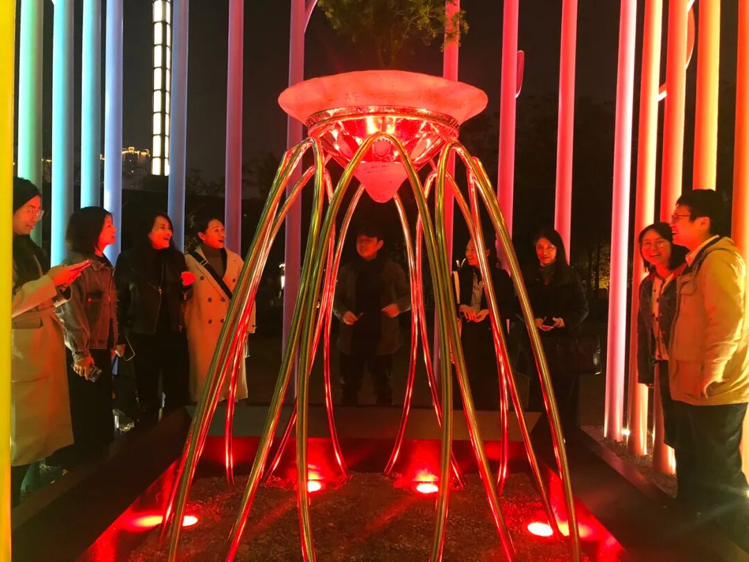 将艺术行为用新媒体的形式表达出来,是当代艺术非常重视的方式之一。如何让“与共盏”和视频更好地呈现出来,江山想到了不锈钢。“佛山有很优秀的不锈钢制造商,可以打造出我想要的造型。同时钢也是城市的一种标志,可以让我们的作品形成人与自然、城市与环境的一种对话。”