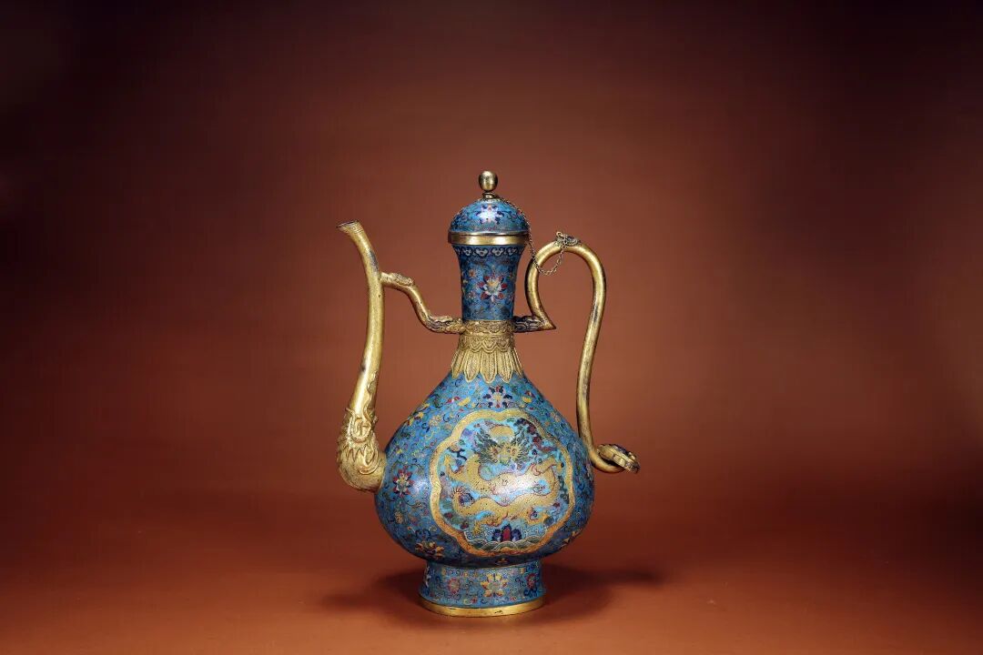清 铜鎏金掐丝珐琅龙纹壶