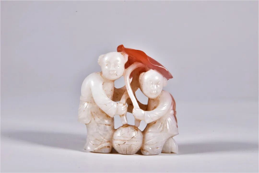 清 南红玛瑙巧色和合二仙摆件