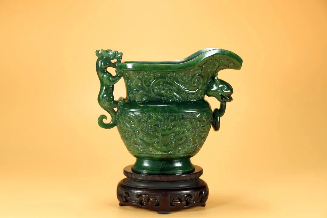 清 碧玉龙纹杯