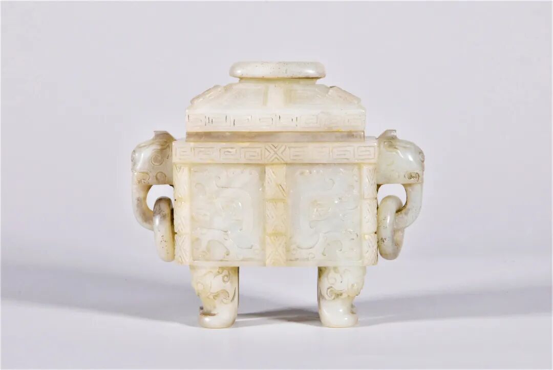 清 白玉饕餮纹兽耳四足鼎式炉