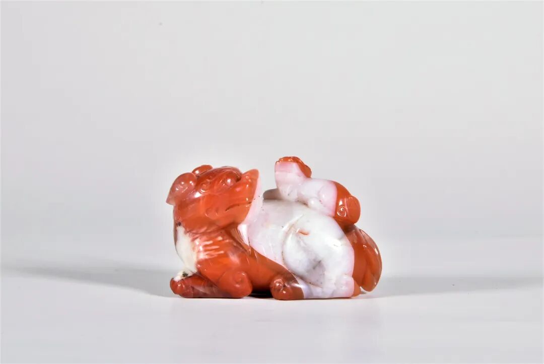 清 南红玛瑙巧色“太狮少狮”摆件