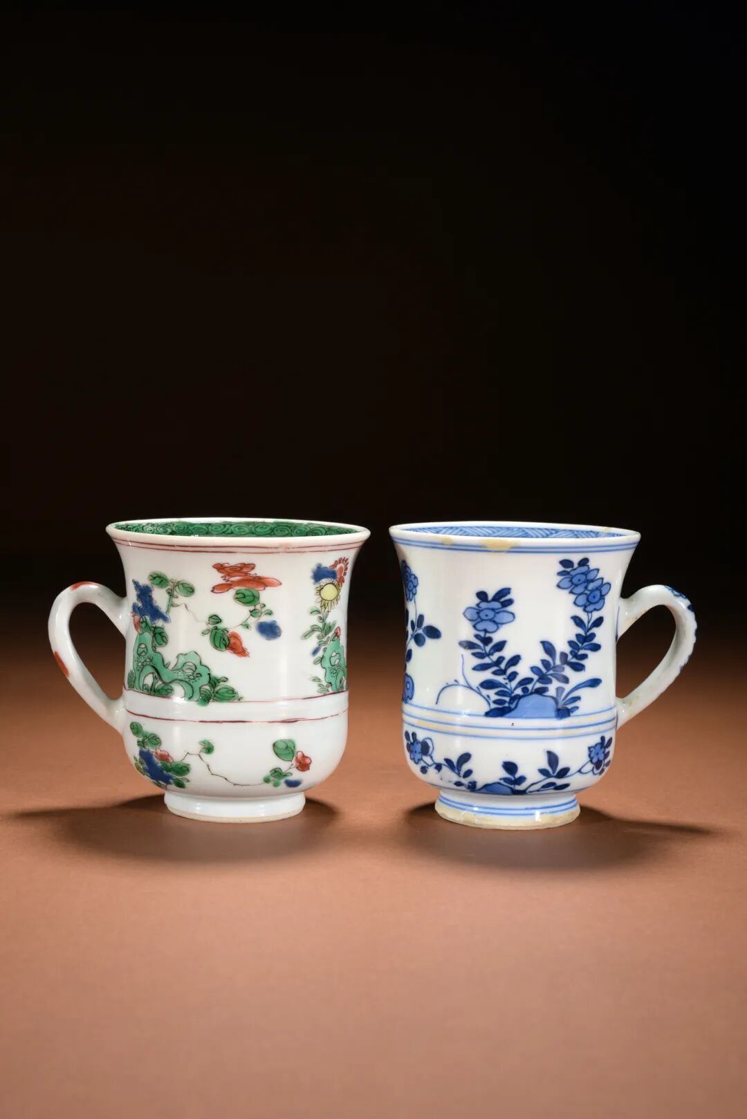 清康熙 青花、五彩杯(一对)