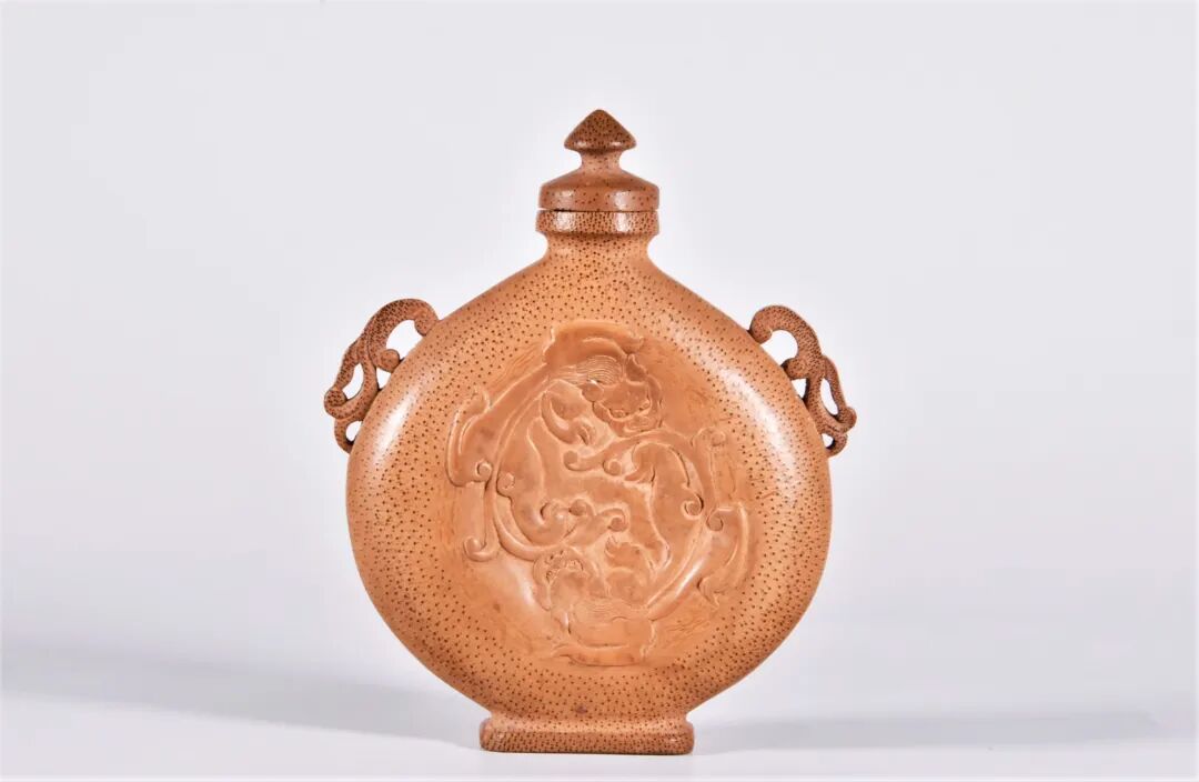 清 竹雕龙纹扁壶