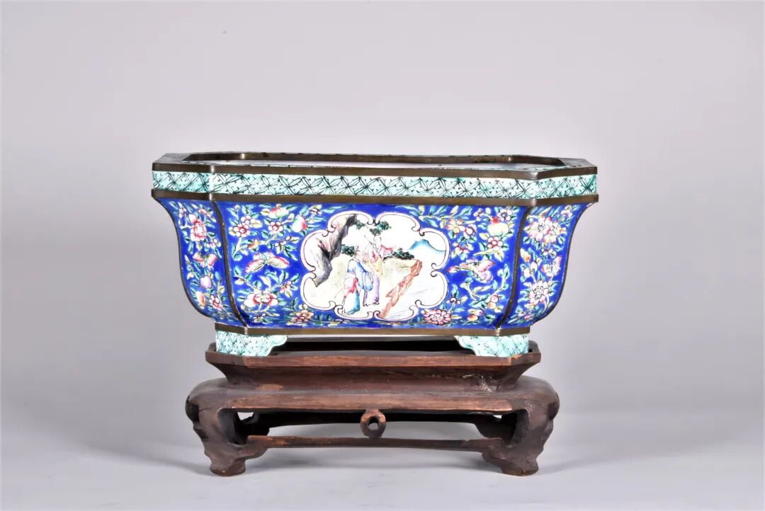 清 铜胎画珐琅开窗人物水仙盆
