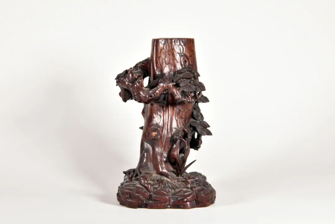 清 红木雕松树花插
