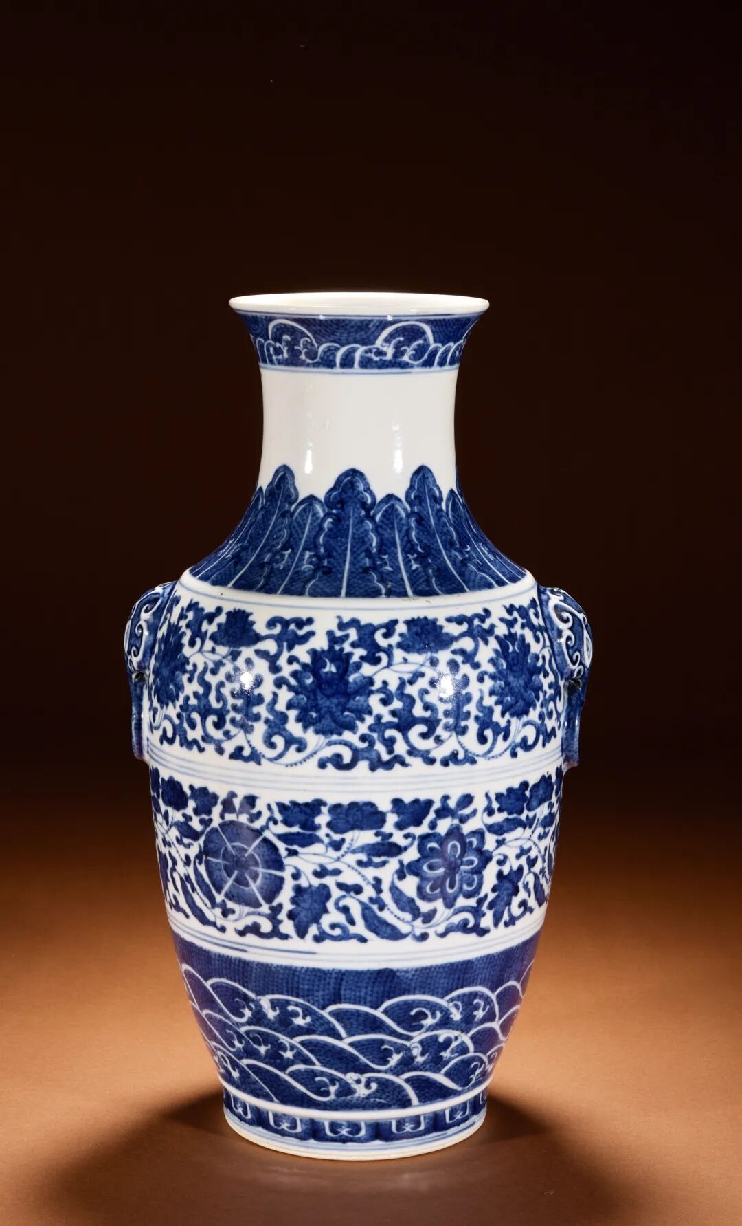 清晚期 青花象耳辅首尊
