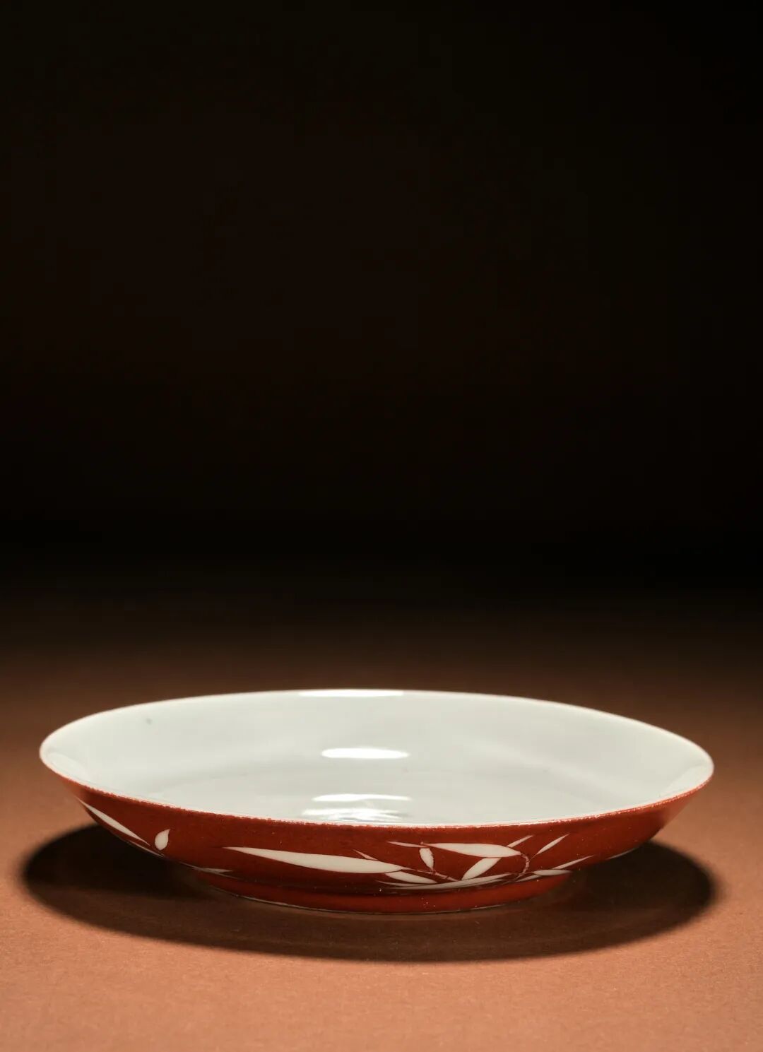 民国 矾红留白竹纹盘