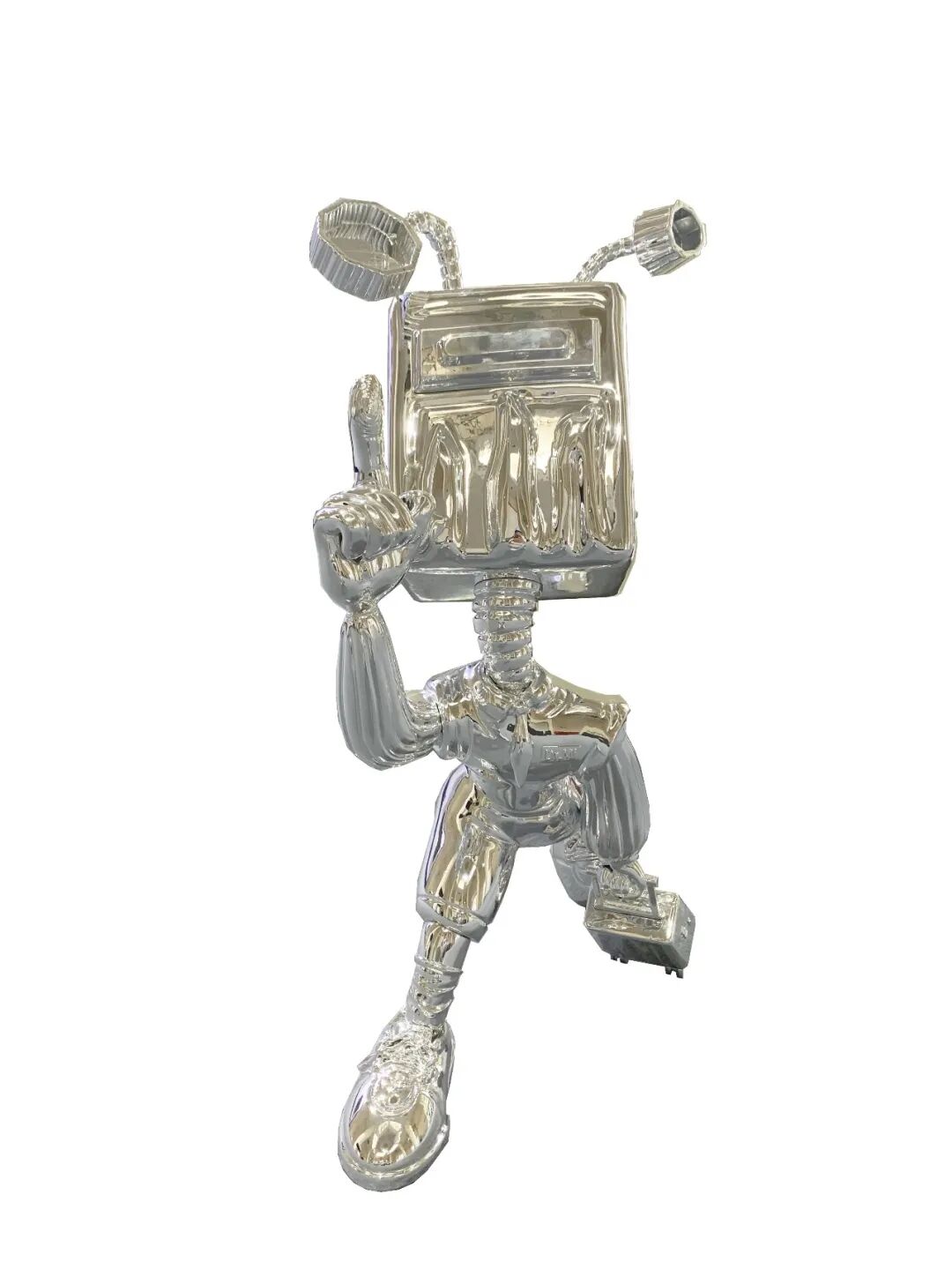 《未来》系列作品中,米巧铭以其如梦似幻、精妙绝伦的想法,幻化出灵魂与色彩的融合,幻化出一个奇妙的世界,作者用小孩的视角创造出一个未来不确定的人工智能机器人,同时突出了在信息化、网络化与智能化的科技发展大背景下,作为社会发展很重要的机器人个体未来的呈现形式。在原本庄重的艺术作品中添加了一线幻想之念,让解读变得轻松趣味起来。