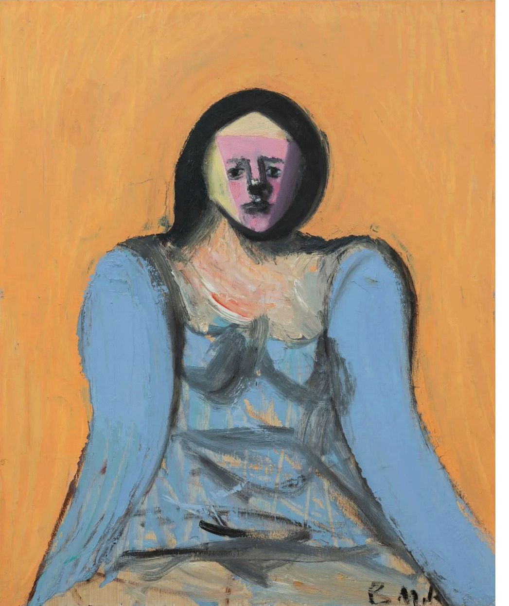 画面中,窒息性的黑色背景形成密不通风的囹圄,人物在黑暗中翛然凸显在面前,带着凌厉的尖刺色彩穿透黑暗。艺术家的意图并非要对观众讲述一个悬疑故事,重要的是现场感。在马轲的作品中,色彩是一个非常重要的元素。冷色的人物与大块的黑色背景所构成的画面传递的不仅仅是寒意,也是马轲自身的非洲经历与其绘画生涯中“孤独”的外在视觉体现。