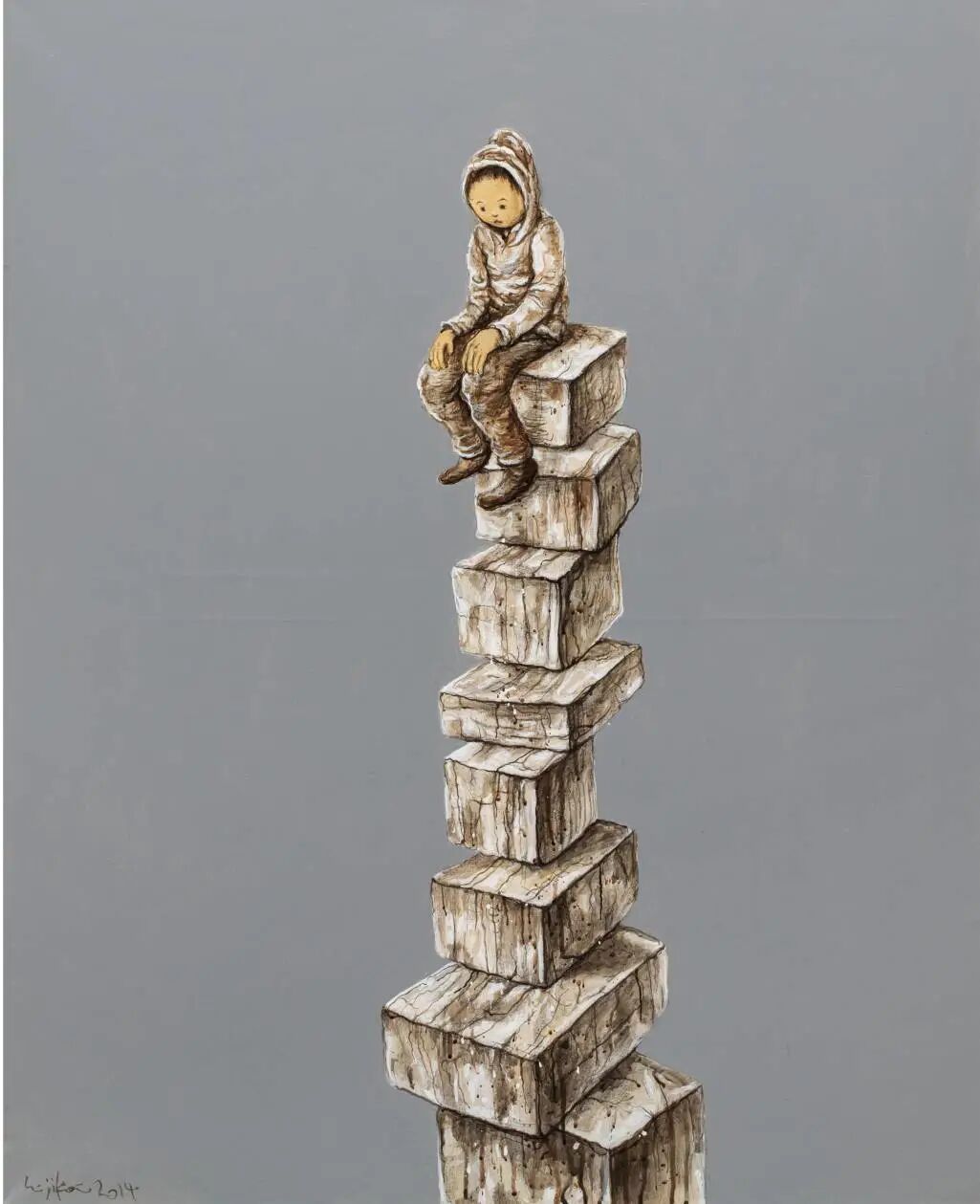 签名:Lijikai 2014(左下)高台上的男孩100×80cm 李继开 (背签)