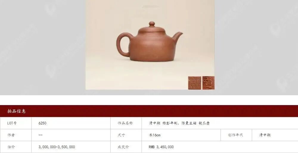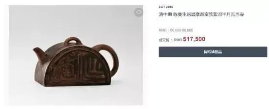 在2016中国嘉德春季拍卖会紫砂壶专场上,陈曼生、杨彭年所制的半瓦壶以51.75万的价格落锤。