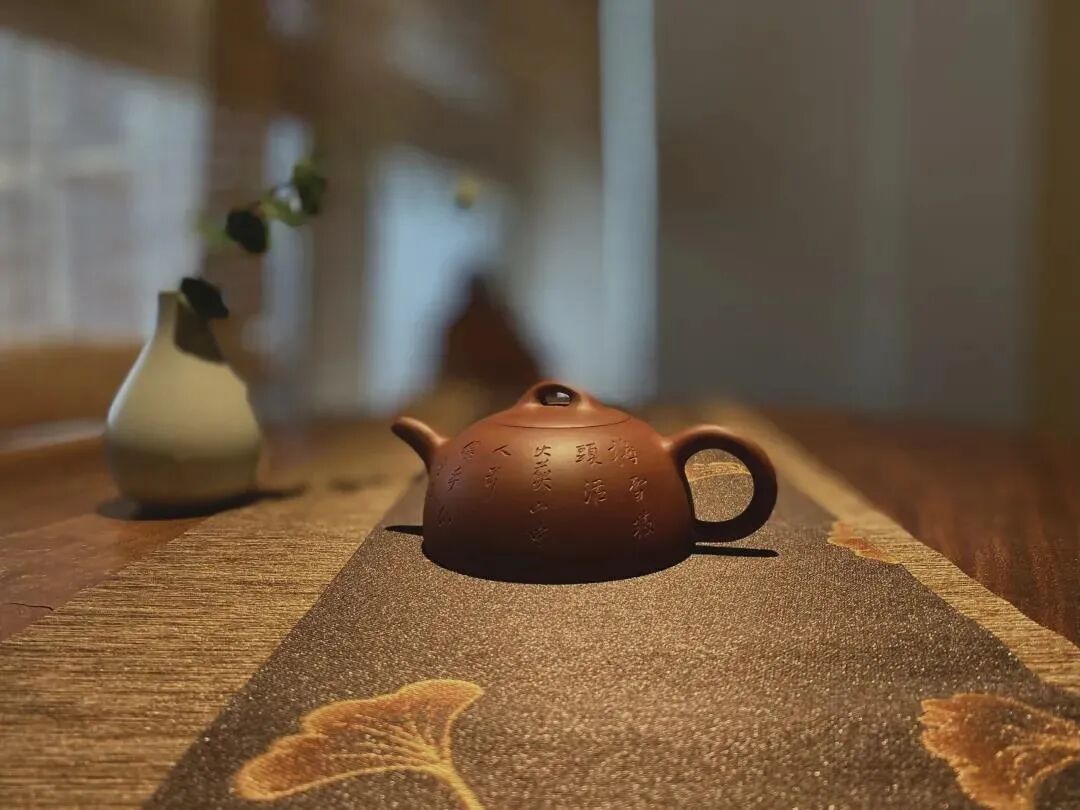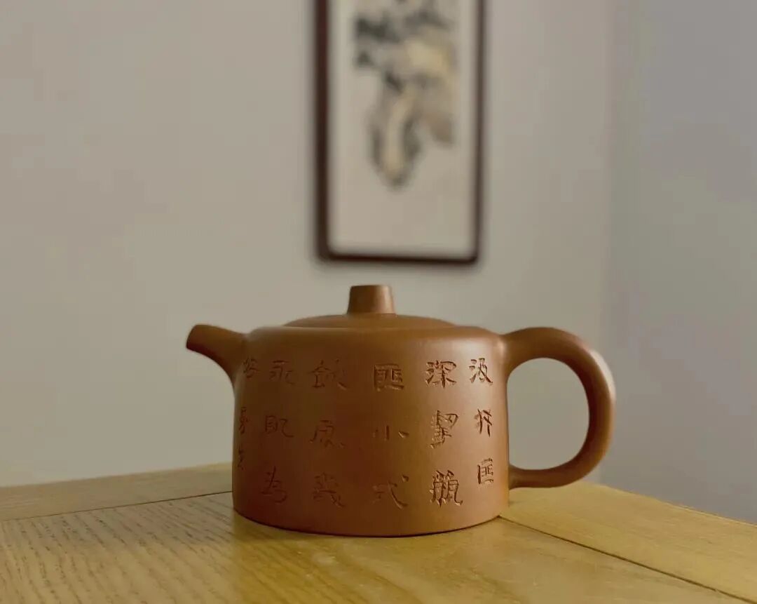 半瓦壶配以壶铭,意境更加古朴,格调幽雅。