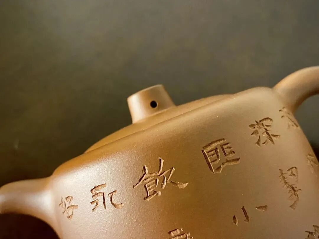 刻绘力道的轻重都将影响到成壶的品质,过轻则达不到文字篆刻的美感,过重则可能导致壶品易开裂,影响其实用性,因而对工艺师篆刻水平的要求非常高。