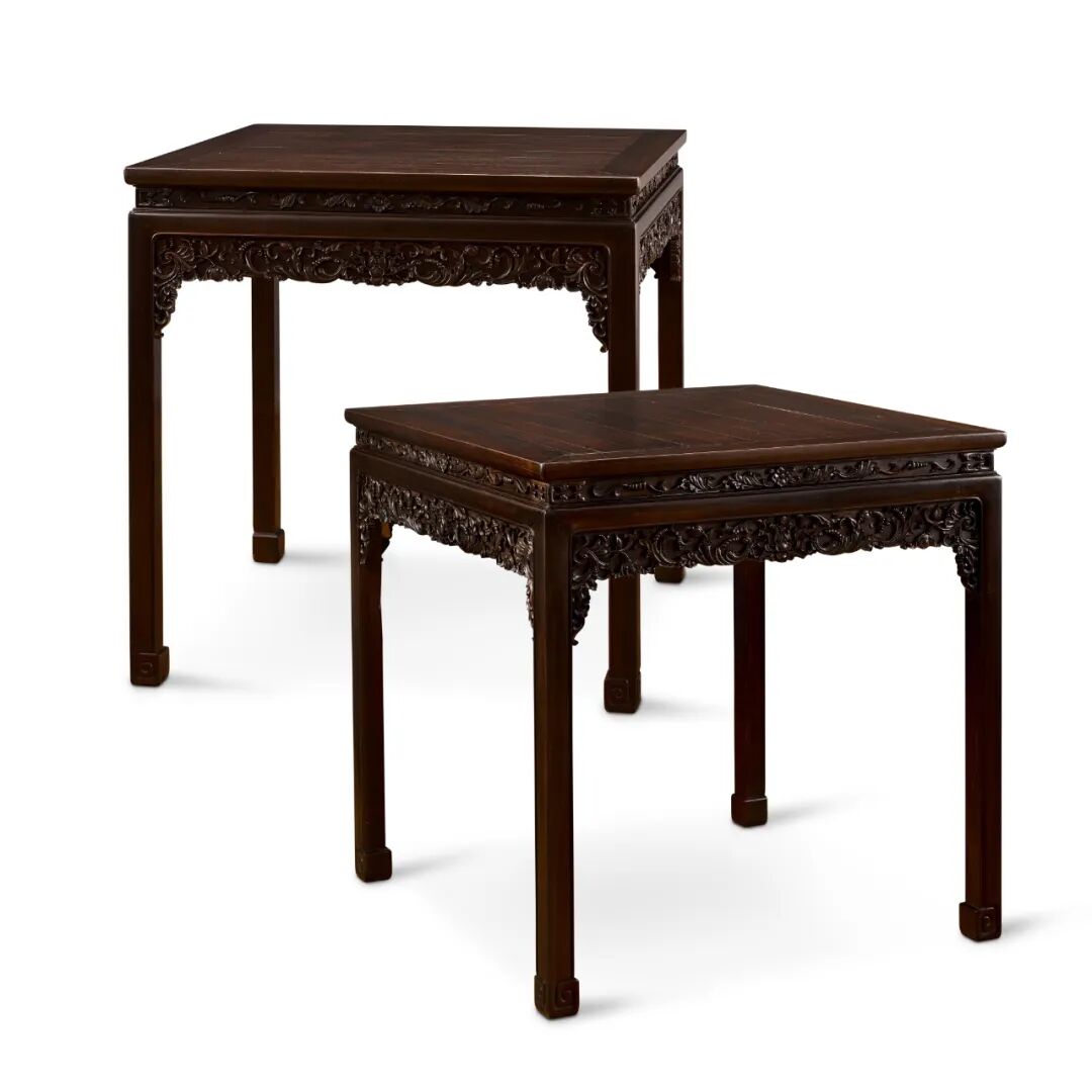 拍品估价:12,000,000 - 18,000,000 港币Lot 3608 北魏六世纪初 石灰岩雕交脚思维菩萨像拍品估价:9,000,000 - 12,000,000 港币1.Arthur B. Michael 收藏,Newton Center,马萨诸塞州 (1942年遗赠)2.奥尔布赖特.诺克斯美术馆收藏,纽约水牛城,编号1942:16.2101.Andrew C. Ritchie,《Catalogue of the Paintings and Sculpture in the Permanent Collection》,奥尔布赖特美术馆,水牛城,1949年,页212,编号2092.Steven A. Nash、Katy Kline、Charlotta Kotik 及 Emese Wood,《Albright-Knox Art Gallery: Painting and Sculpture from Antiquity to 1942》,水牛城,1979年,页84-851.《Far Eastern Art in Upstate New York》,康乃尔大学强生美术馆,绮色佳、奥尔巴尼、由提卡、雪城、罗彻斯特及水牛城,1976-1977年,编号21(插图)2.《Six Dynasties Art from the Norman A. Kurland Collection: Part Two》, 埃斯卡纳齐,伦敦,2018年,编号17拍品估价:8,000,000 - 12,000,000 港币来源:香港苏富比2008年4月11日,编号2830Lot 3615 清十八世纪末至十九世纪 紫檀雕花草纹八仙桌一对拍品估价:8,000,000 - 12,000,000 港币Lot 3605 北宋至金十二至十三世纪 钧窑天蓝釉紫斑碗
