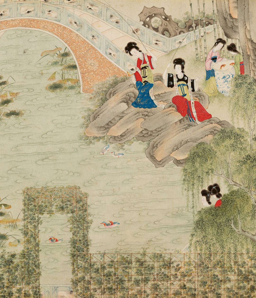 东方女子的美,是留白的。她们以花为貌,以鸟为声,以月为神,以柳为态,以冰雪为肤,以秋水为姿。甚至连画中的一草一木、一水榭、一山一石,都成为她们美的折射。