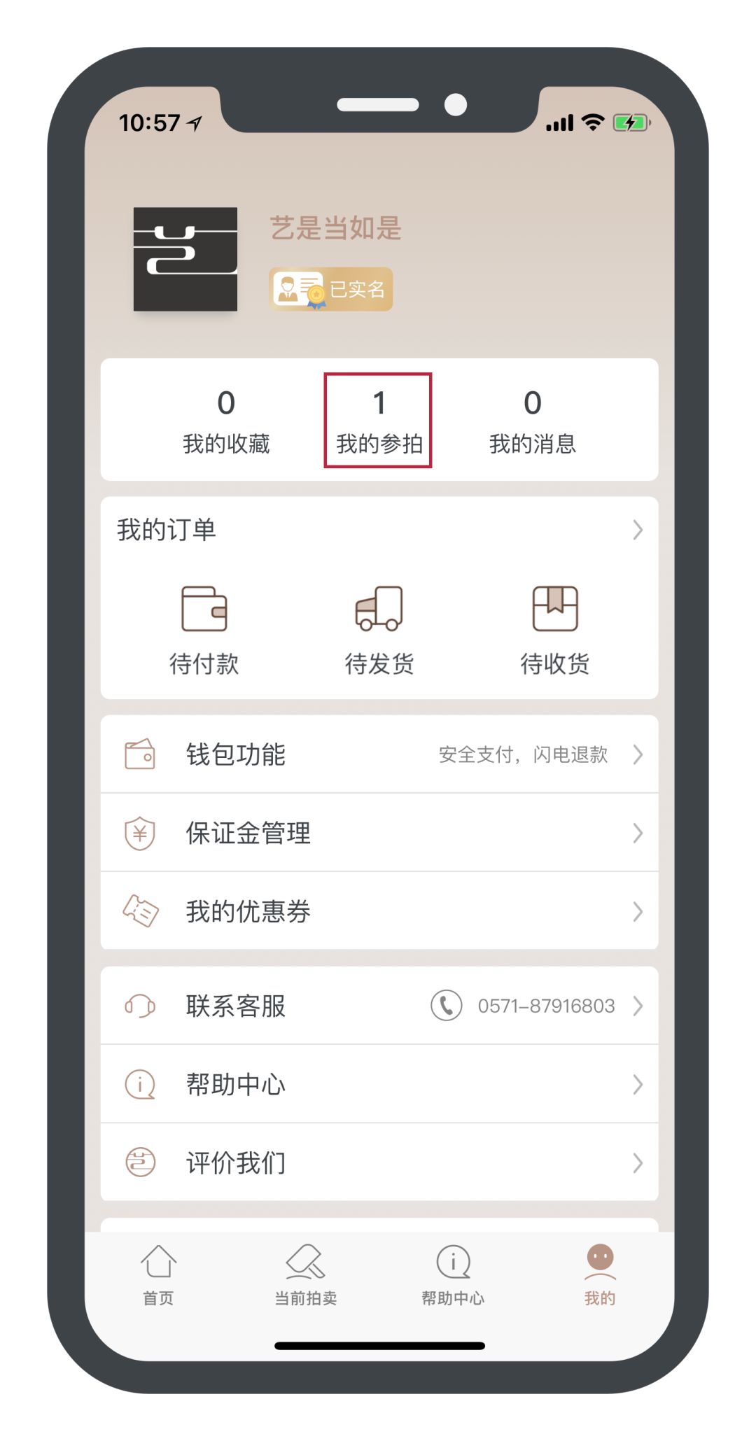 一、选择您心仪的拍品,点击页面中“开拍提醒”,您的拍品会被保留在“我的参拍”页面。您将会在开拍前3分钟收到艺是为您发出的开拍提醒。