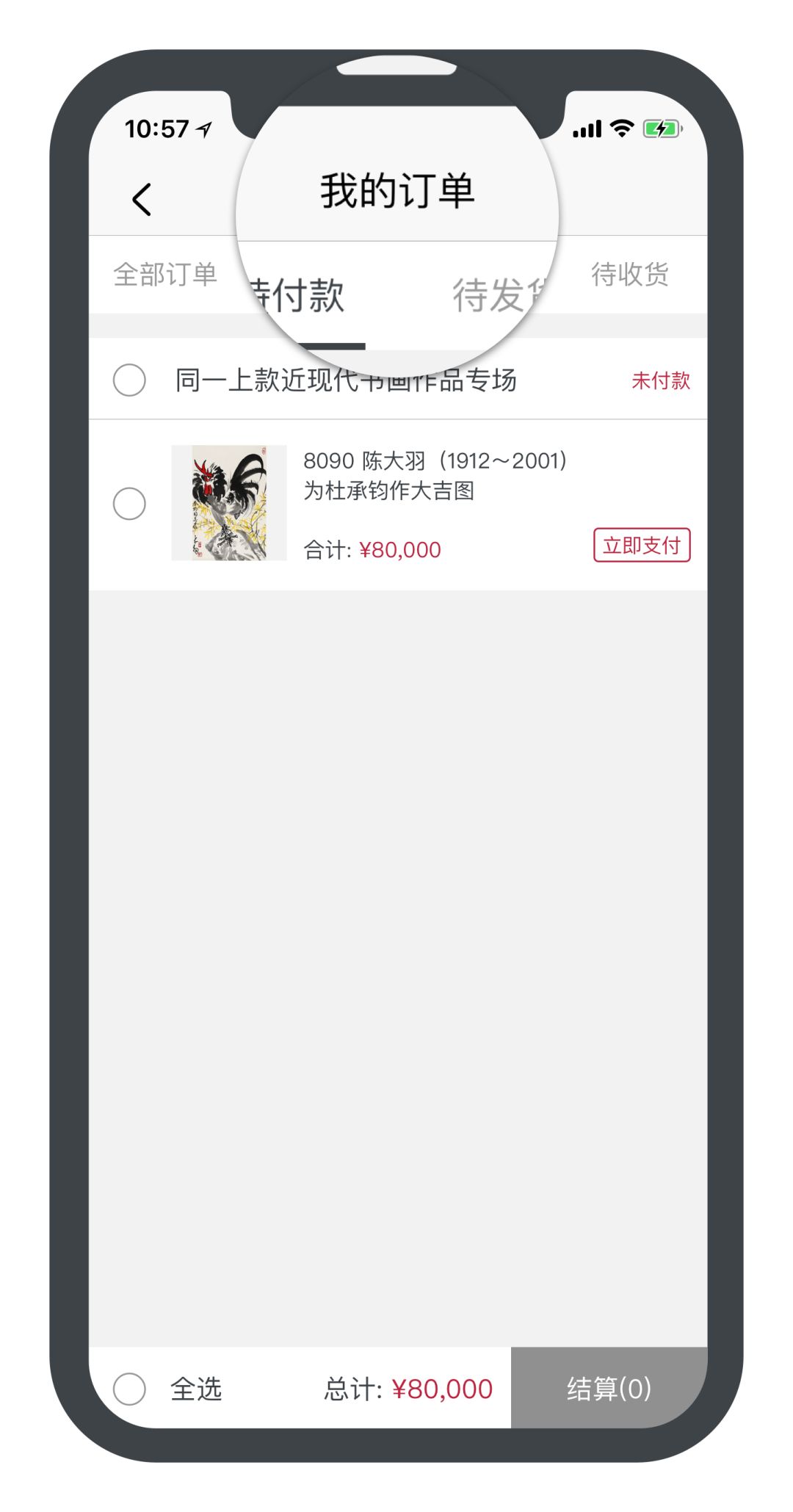 三、竞价成功后,您的拍品将显示在“我的订单”中,方便您查看及付款。