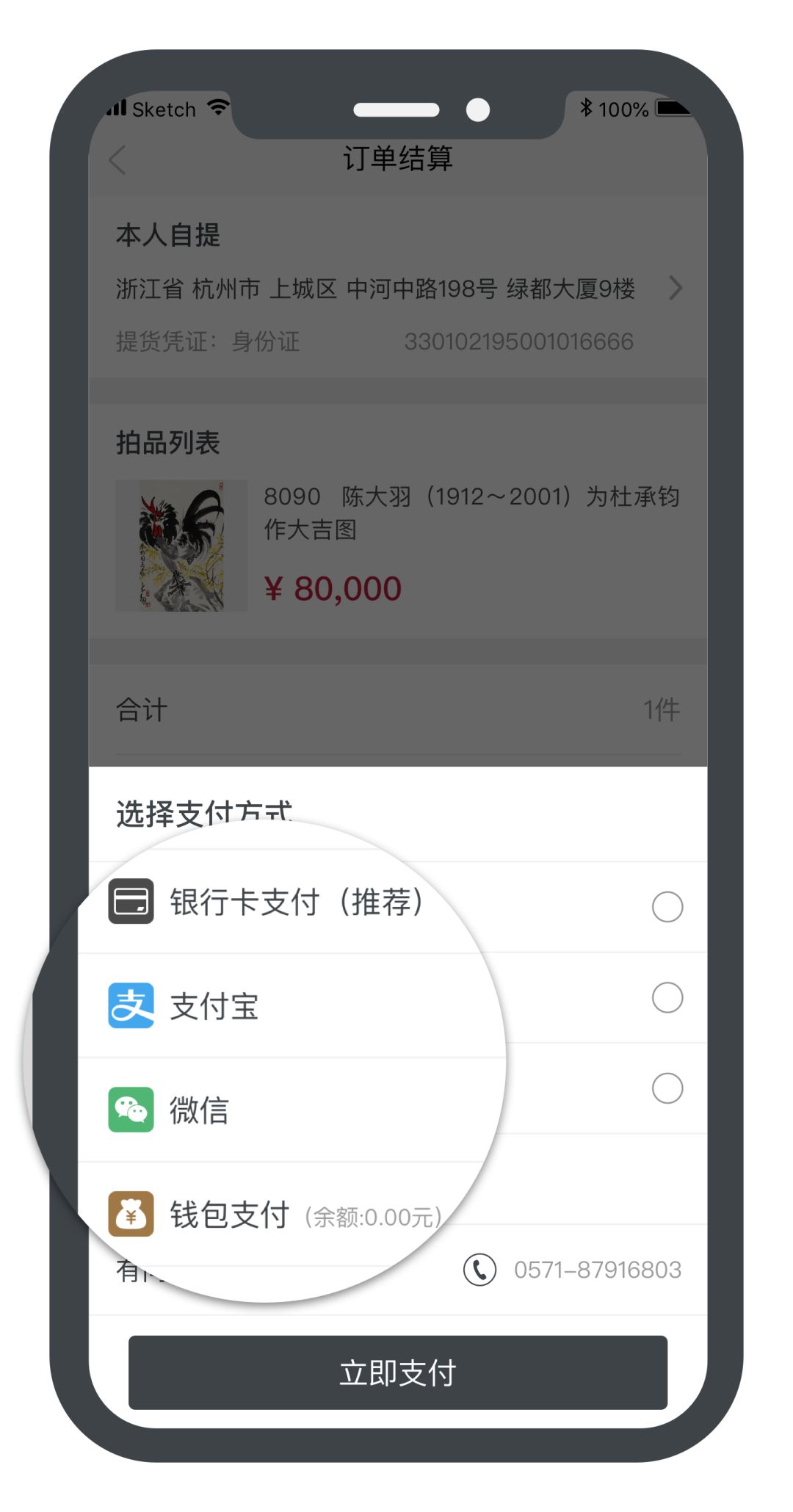 四、付款方式:我们支持艺是钱包、支付宝、微信支付与银行卡四种结算方式。如您使用艺是钱包缴纳单品保证金,当没有竞买成功时,保证金会即时退还到您的钱包,方便您下一件保证金的缴纳,其他两种方式的退还则根据银行规定需要2-3天的时间。