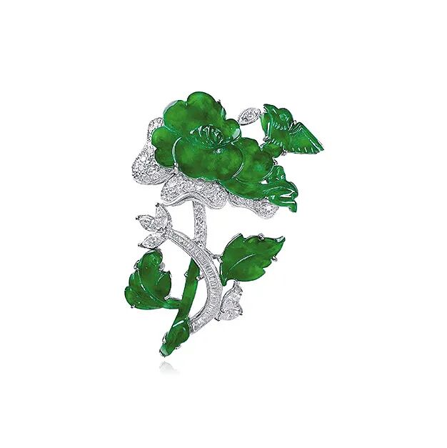 天然翡翠配冰种翡翠及彩色宝石花卉胸针