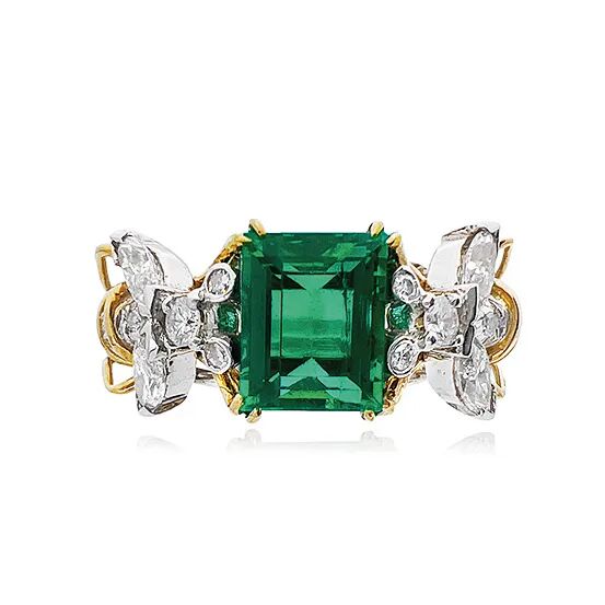 独特的2.01克拉天然哥伦比亚未经处理祖母绿配钻石戒指,JEAN SCHLUMBERGER,蒂芙尼